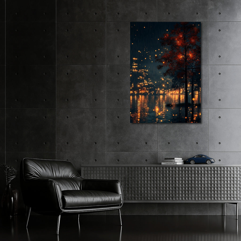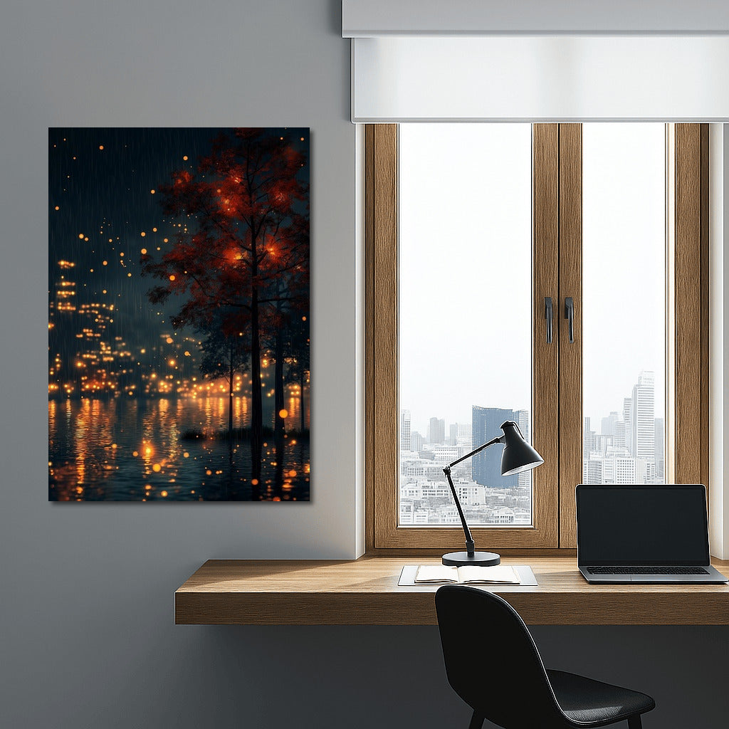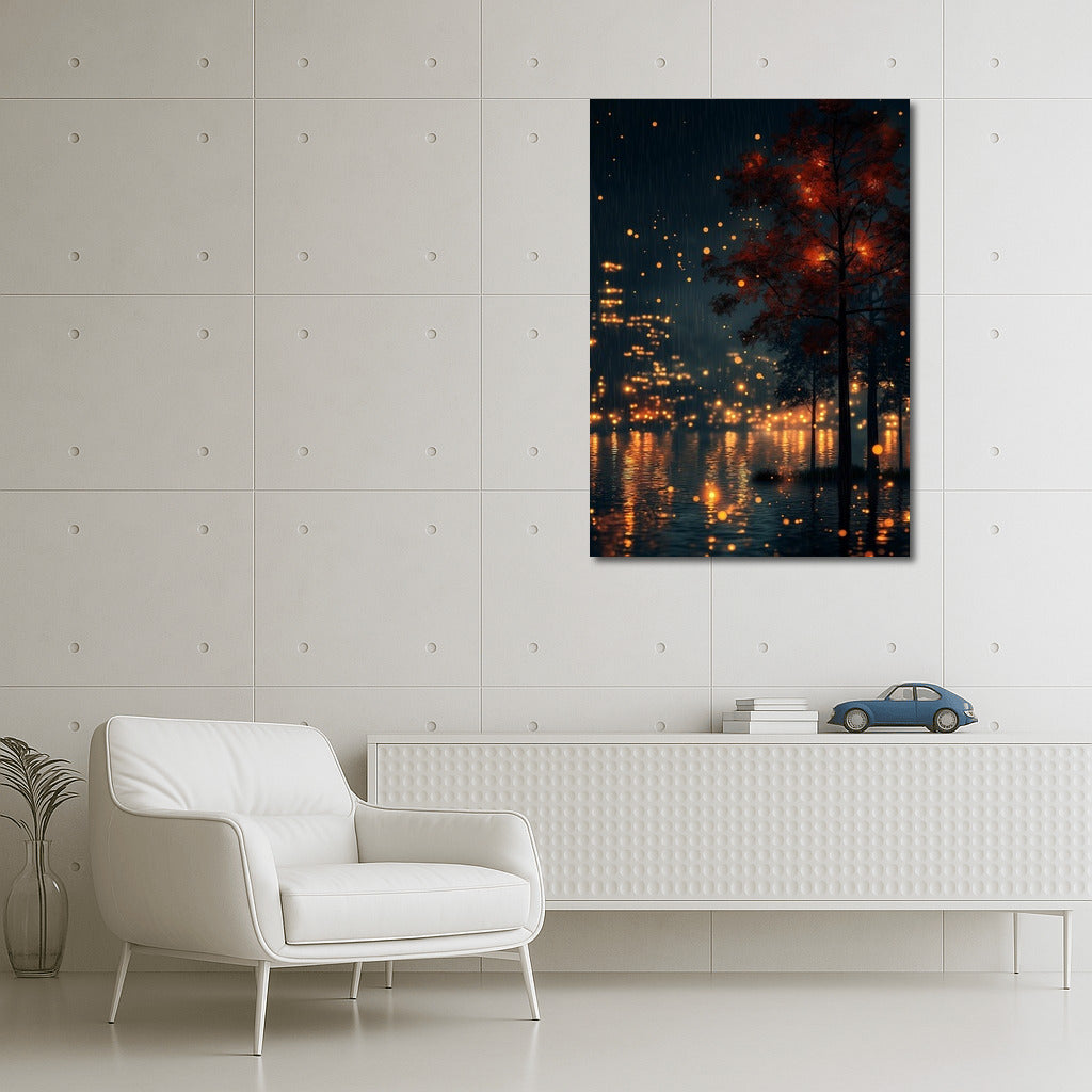 The charm of the night forest: the shining lights between the trees create magic. A poster that illuminates the walls and the imagination. See more from the collection: Mixed Wall Art