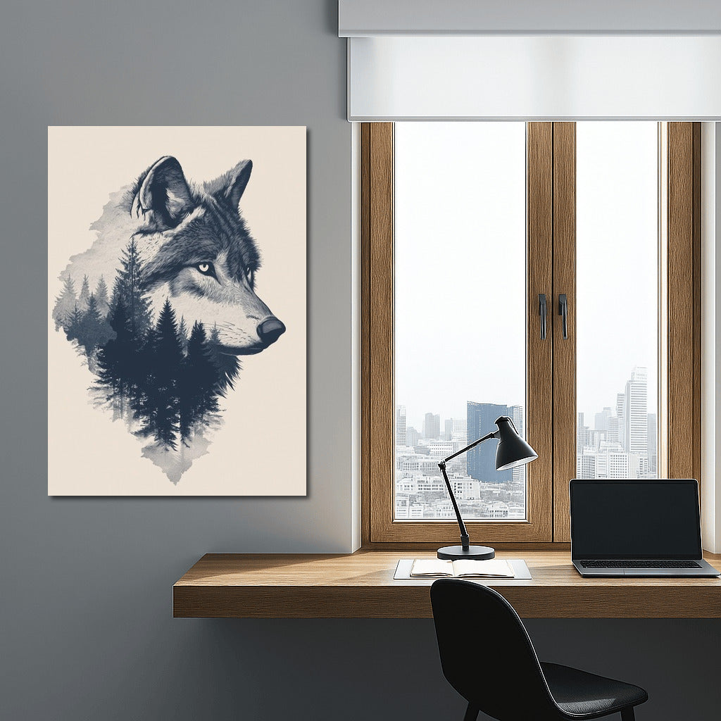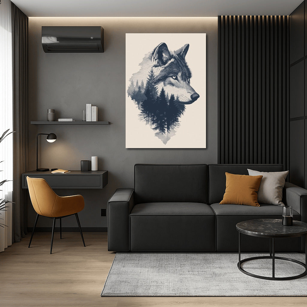Wolf and forest in one, this poster is a symbol of wild harmony that will decorate your wall art with a unique natural mystery. See more from the collection: Mixed Wall Art