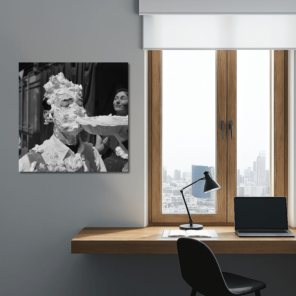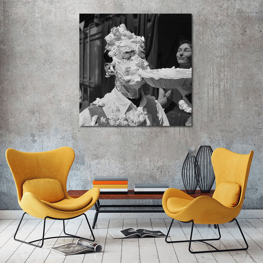 Contemporary Wall Art: A Poster About the Power of Humor! Where to Put Cream When You Have Four? Smile Guaranteed! See more from the collection: Humor Art
