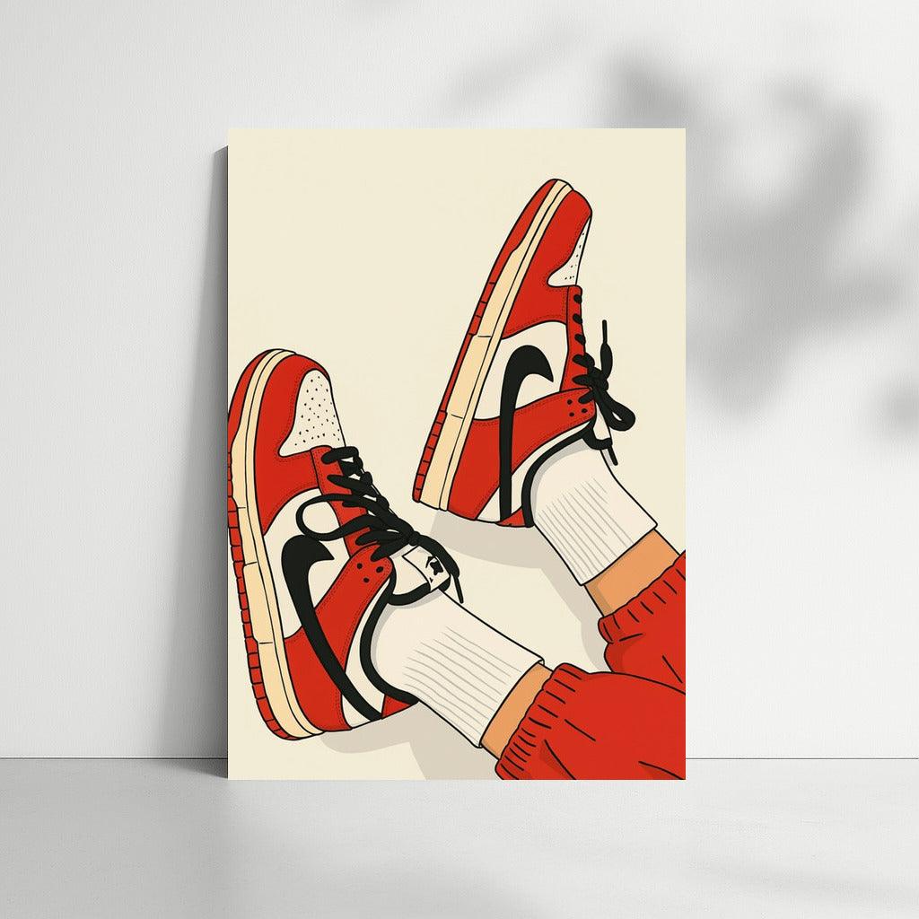 A vibrant poster of red Nike sneakers. Dynamic wall art that embodies style and freedom of movement. See more from the collection: Nike Art