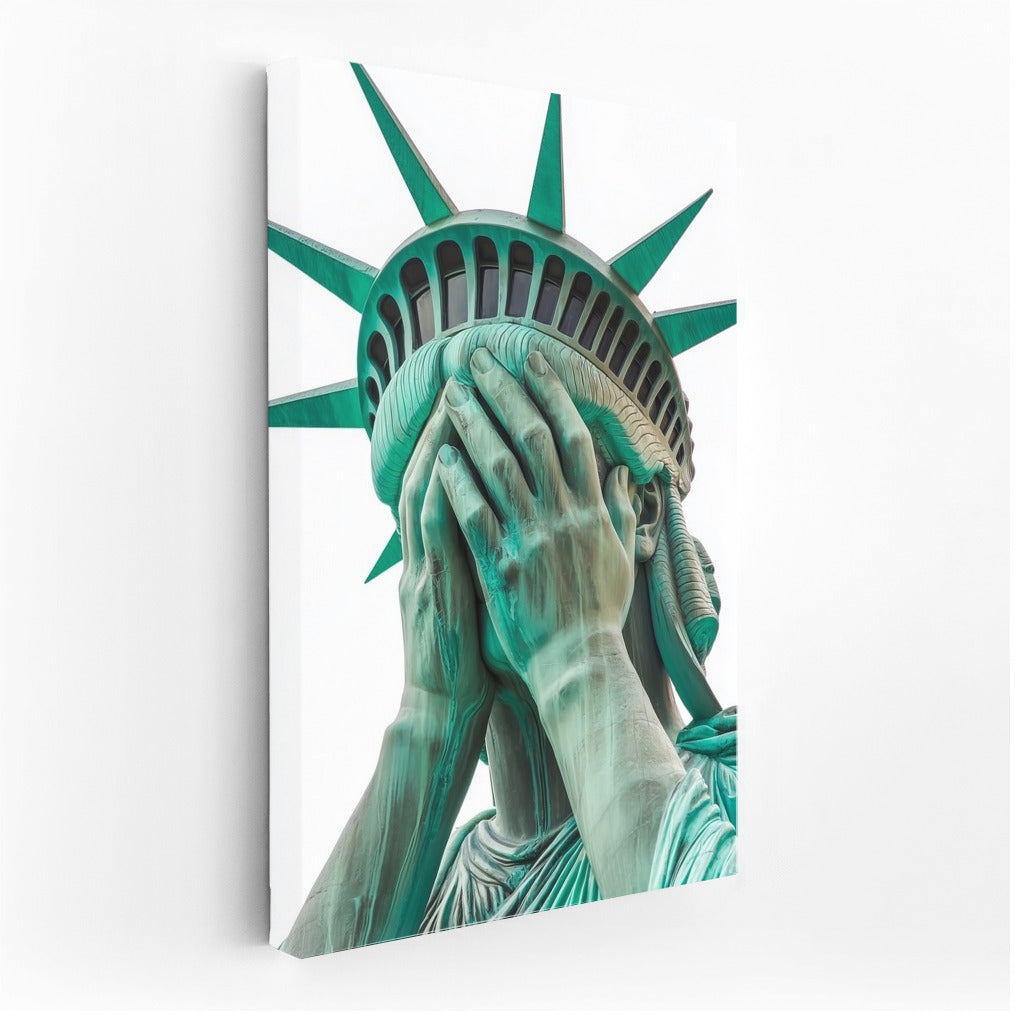 Modern poster with an emotional mood: the statue of liberty with a covered face. Add unique wall art to your interior! See more from the collection: Cityscapes & Skylines Art