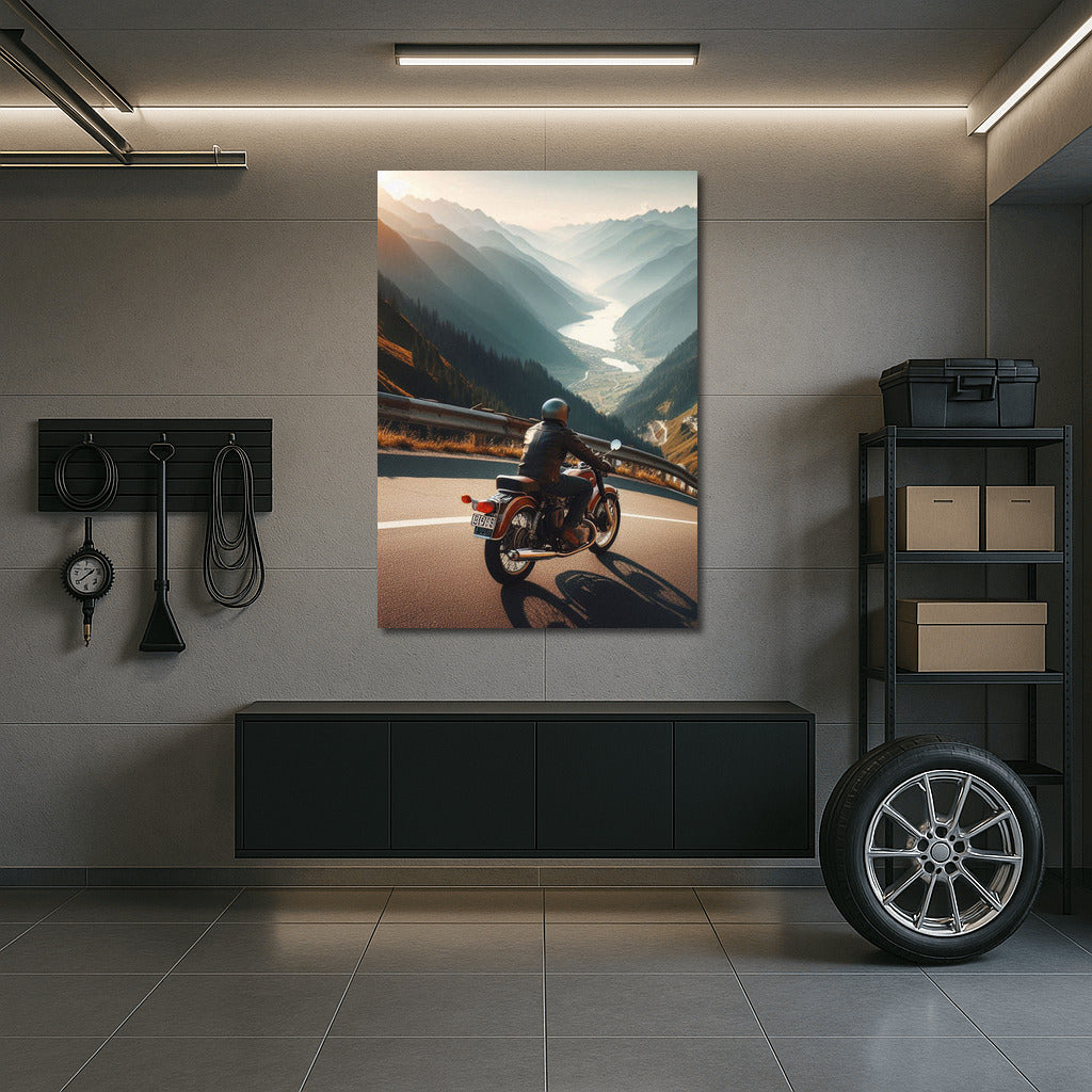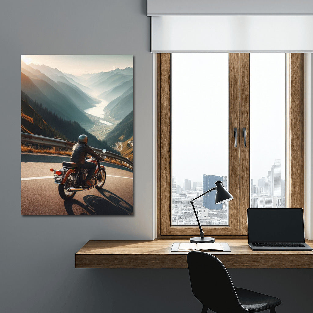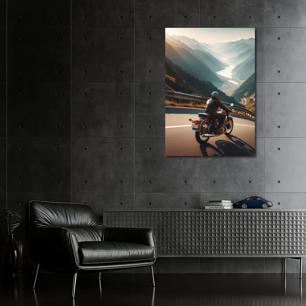 Conquer the peaks with the poster: Indian motorcycle on a mountain road. Inspiration and freedom for your interior! See more from the collection: Indian Motorcycle Art