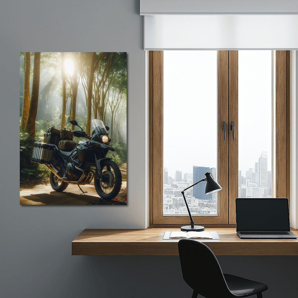 Freedom on Wheels: Motorcycle Touring on a Forest Trail Wall Art