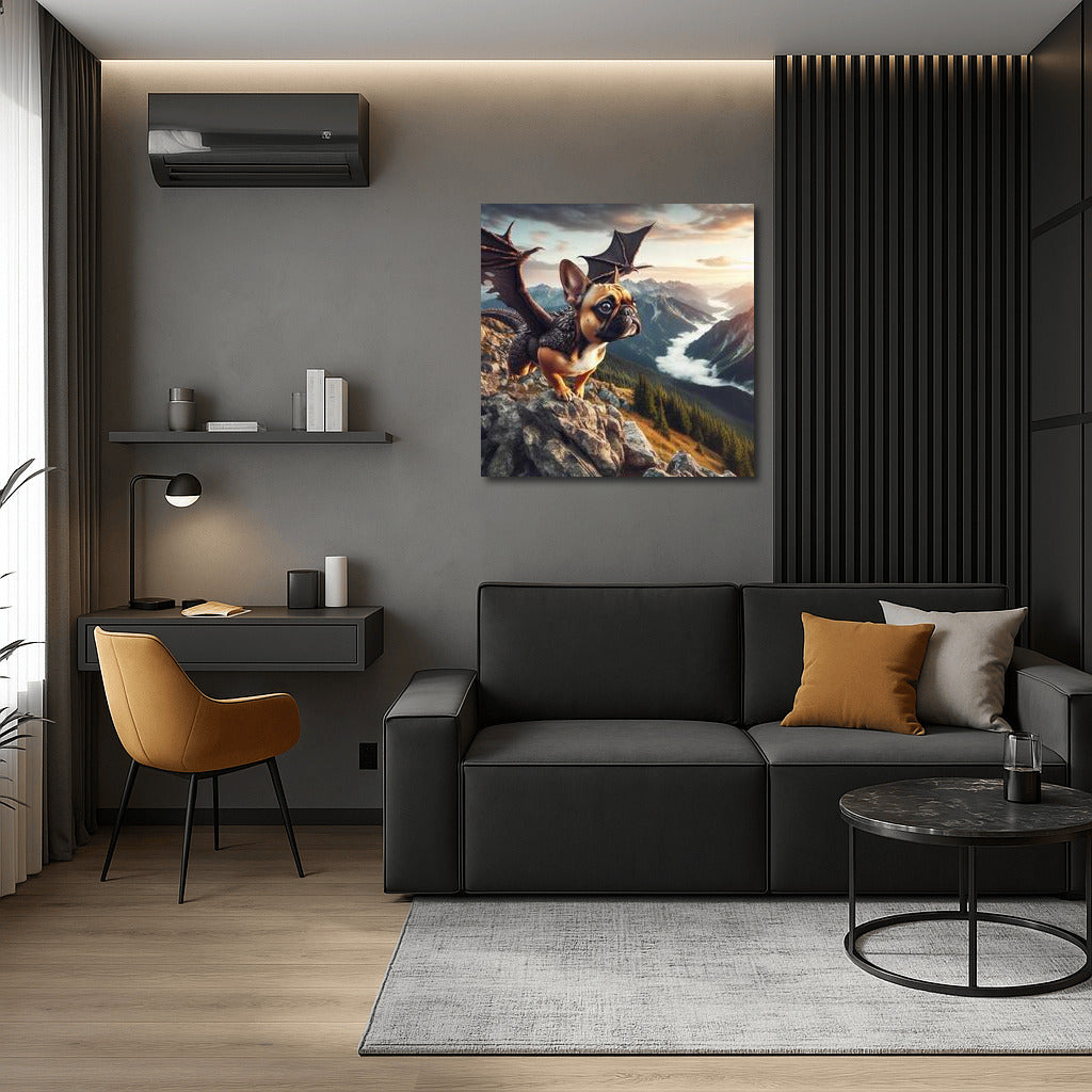 French Bulldog Dragon: Flight Over Mountain Peaks Wall Art