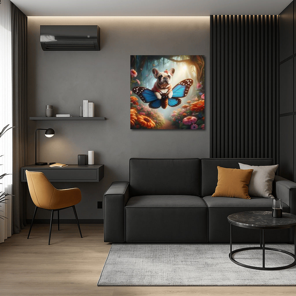 French Bulldog Flying on a Butterfly in a Magical Forest Wall Art