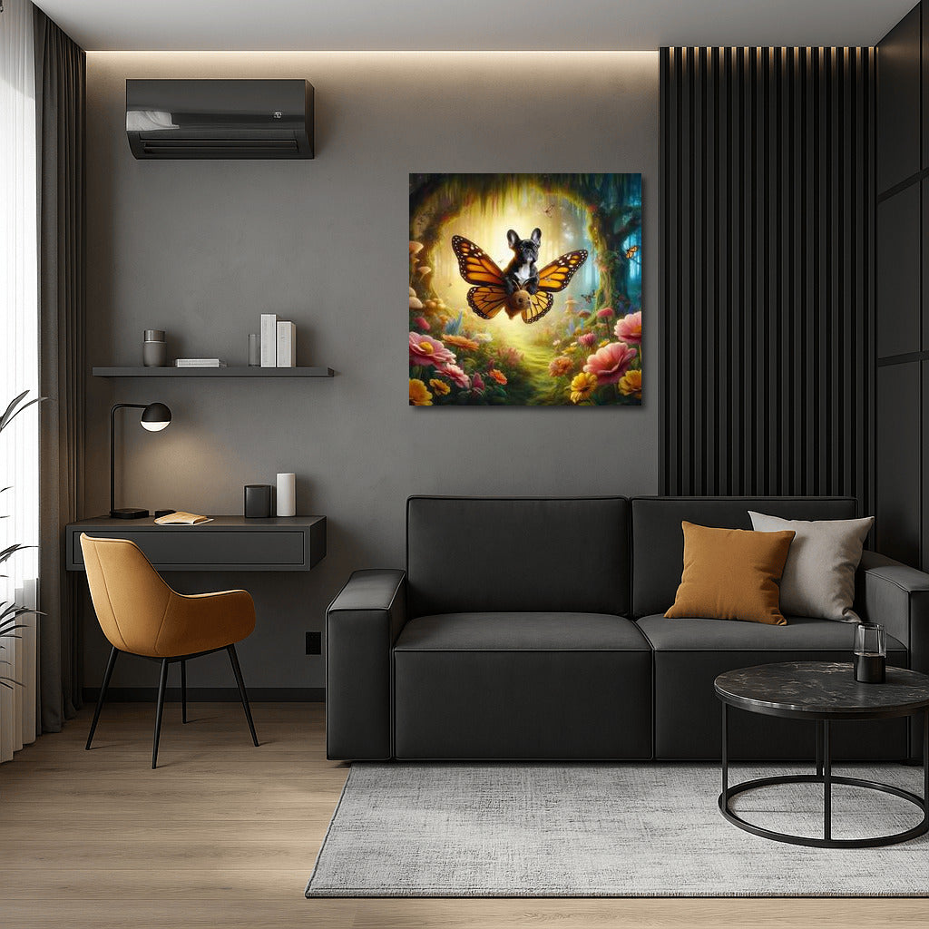 French Bulldog on a Butterfly: A Fairytale Flight in a Magical Forest Wall Art