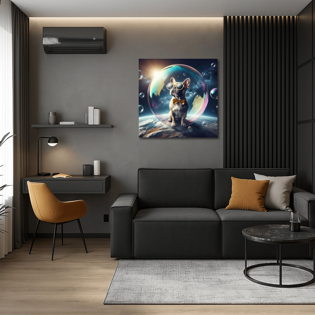 French Bulldog's Space Journey in a Soap Bubble Wall Art