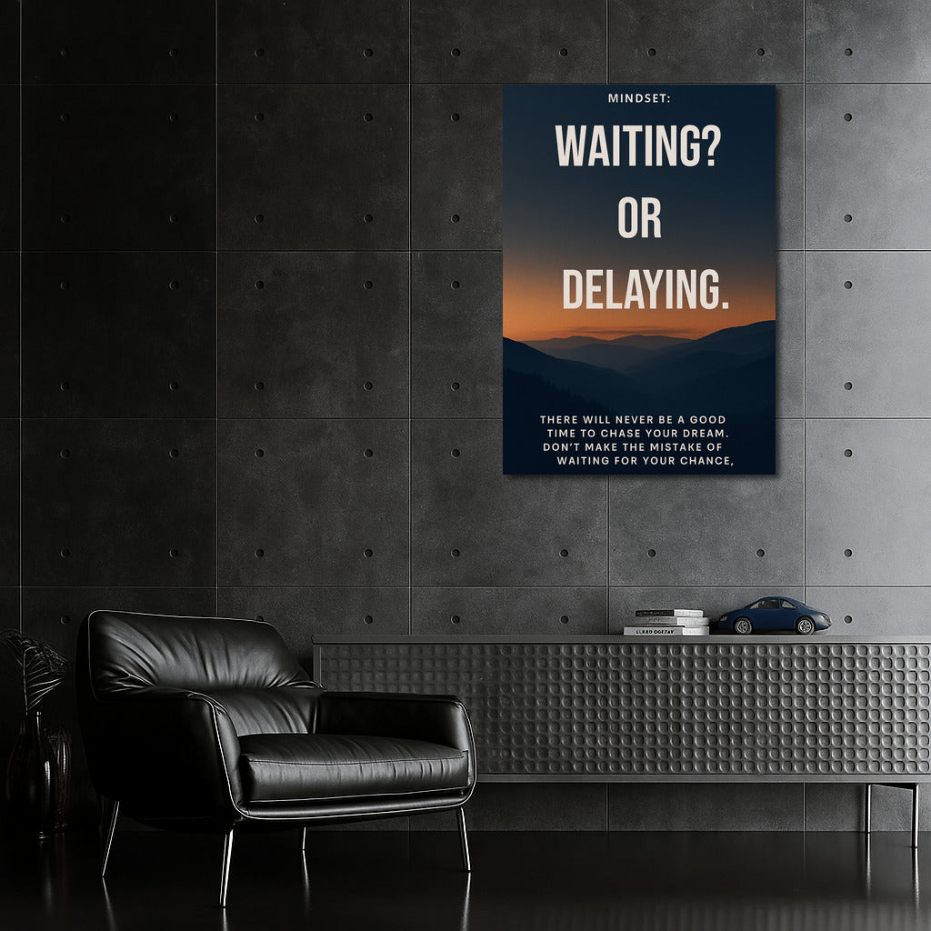 A poster that inspires action: Mindset: Waiting? Or Delaying. Wall art that helps you make your dreams come true. See more from the collection: Dreams & Vision Quotes Art