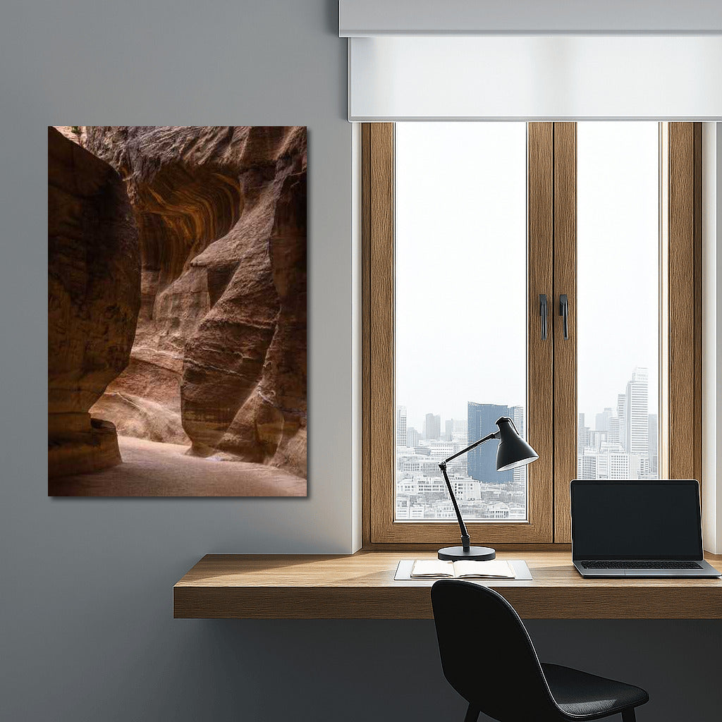 The waves of time have frozen in stone silence. Your interior will come alive with this painting: the spirit of nature and the mystery of cave canyons. See more from the collection: Caves & Canyons Art