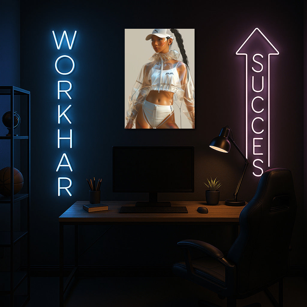 A stylish model with a futuristic look: a poster for those who appreciate modern wall art and innovations in fashion. See more from the collection: Wall Art with Women