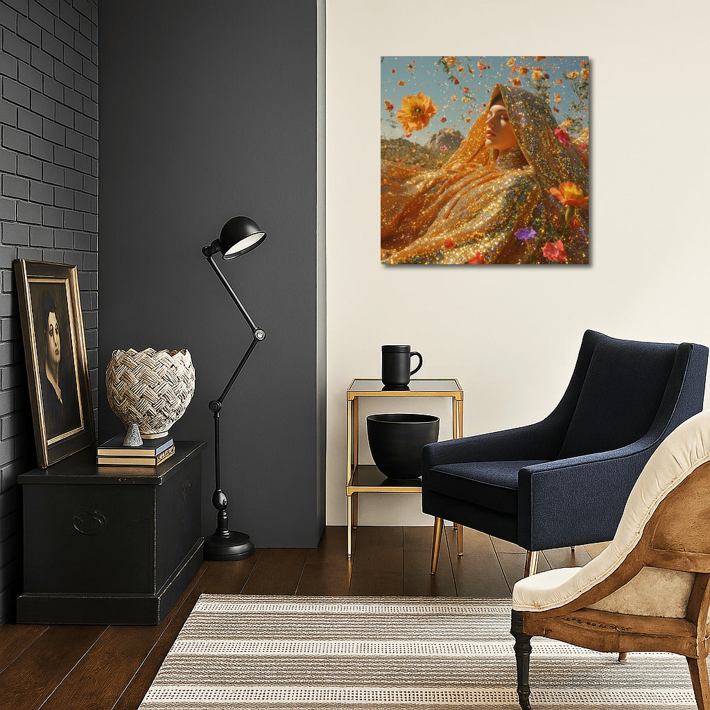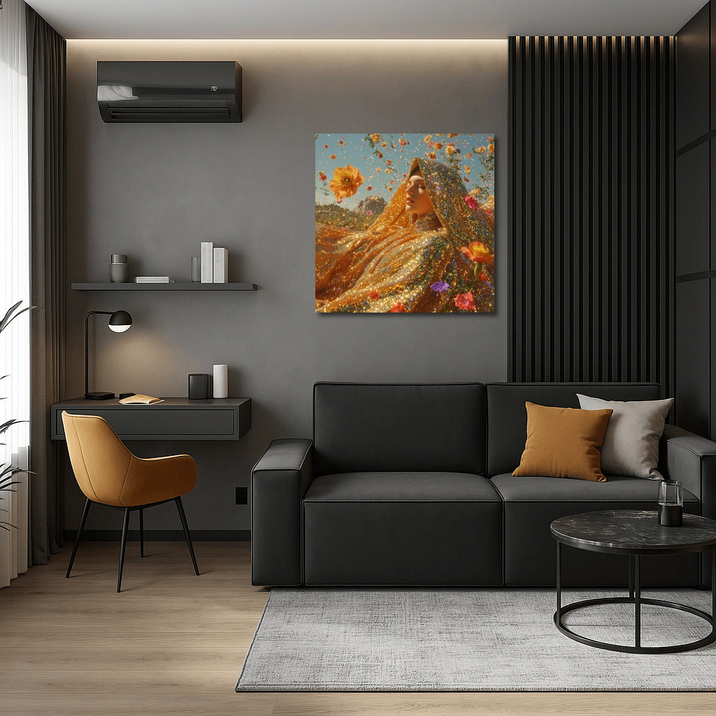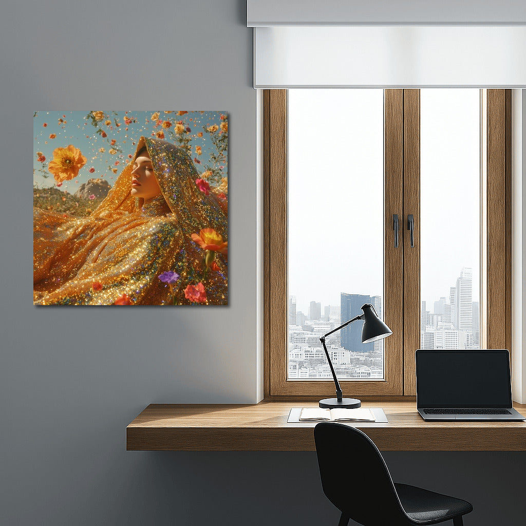 Golden glow and flowers - this painting will transform your space into a dreamy garden. Perfect for wall art. See more from the collection: Wall Art with Women