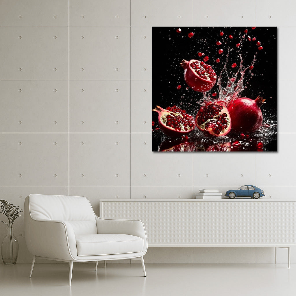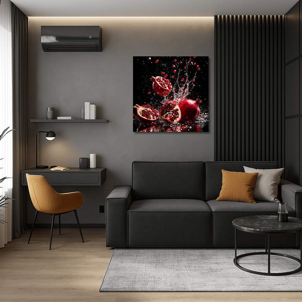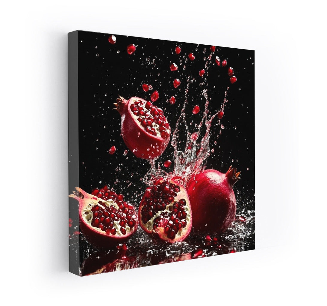 Juicy pomegranates in motion! This poster will liven up your interior with an explosion of color and brightness. Wall art for gourmets! See more from the collection: Food Art