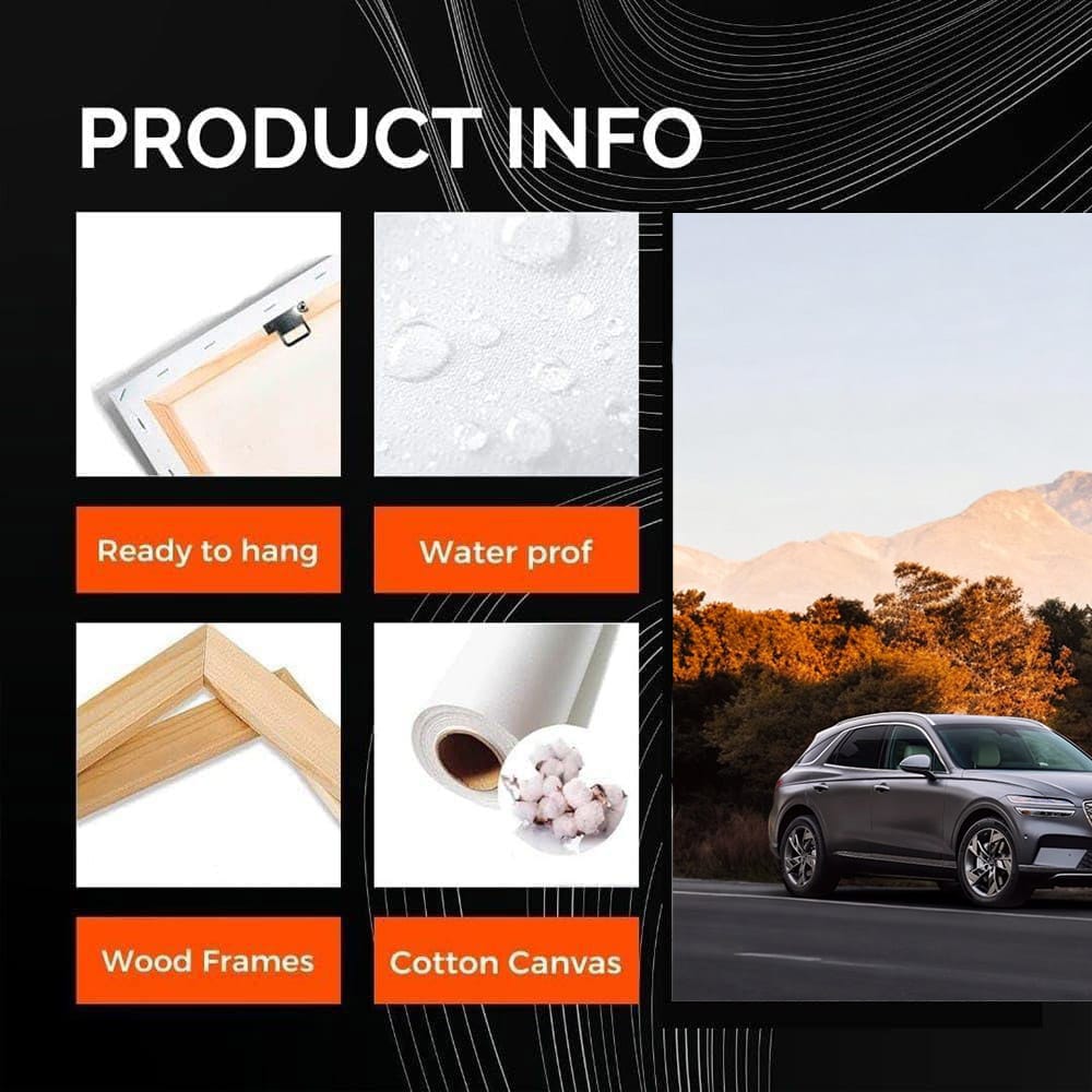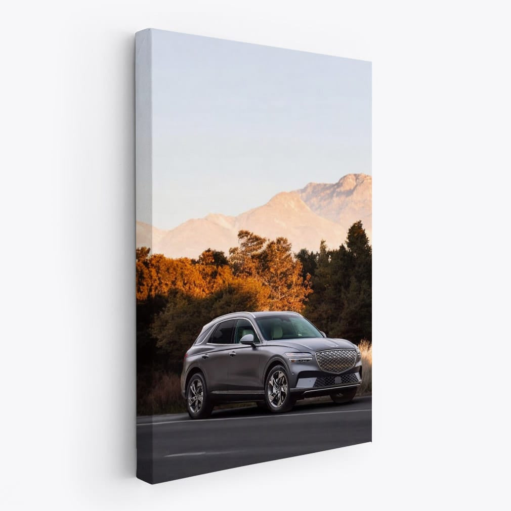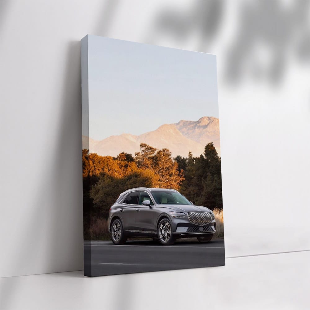 Imagine a poster worthy of any car enthusiast's garage. Genesis GV70 against the backdrop of autumn mountains, where every leaf is like a detail on a cool car. This painting is pure power and style, wall art for those who live life in full speed. See more from the collection: Genesis Art