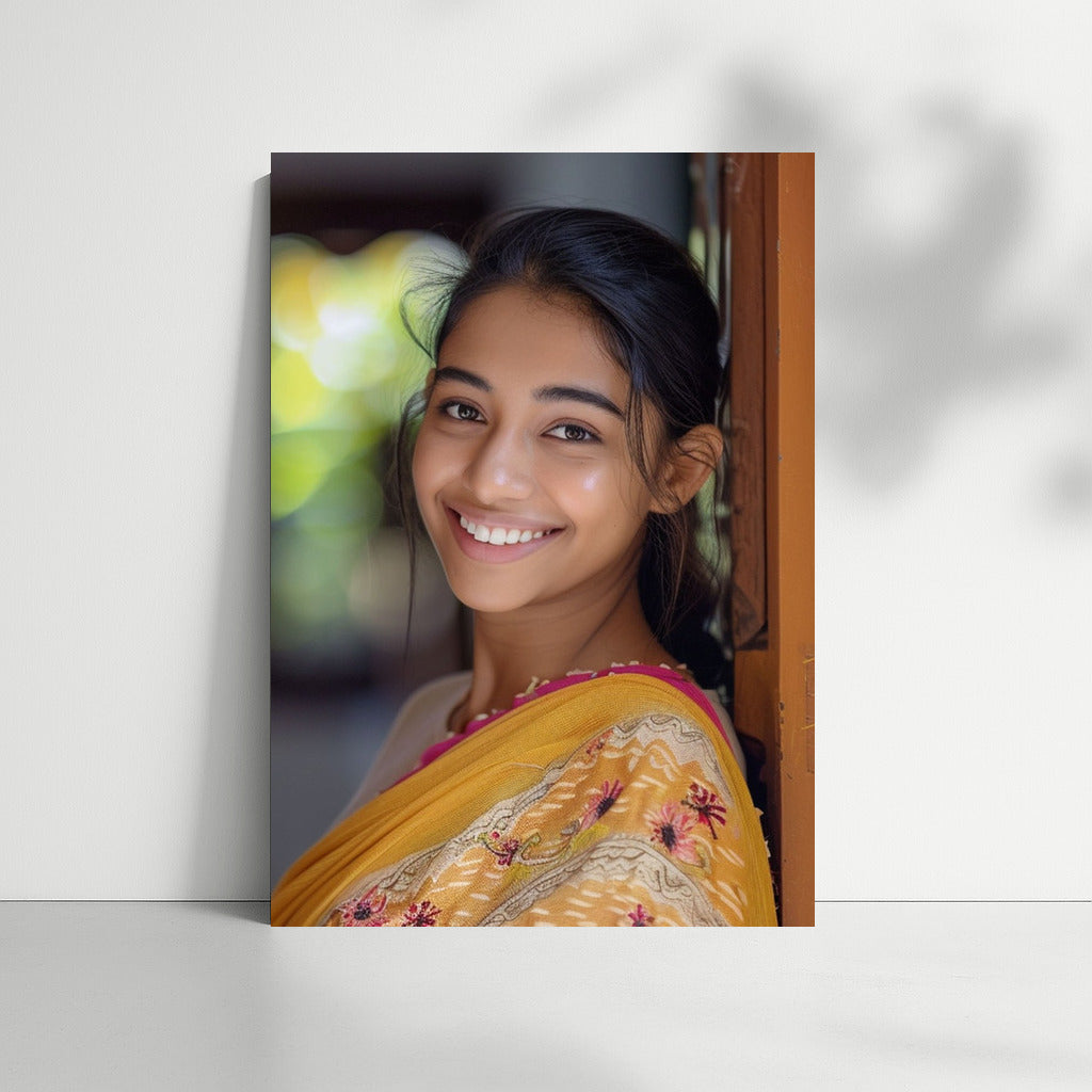 The rays of light on this girl's gentle smile will bring warmth to your home. A perfect poster for wall art lovers. See more from the collection: Wall Art with Women