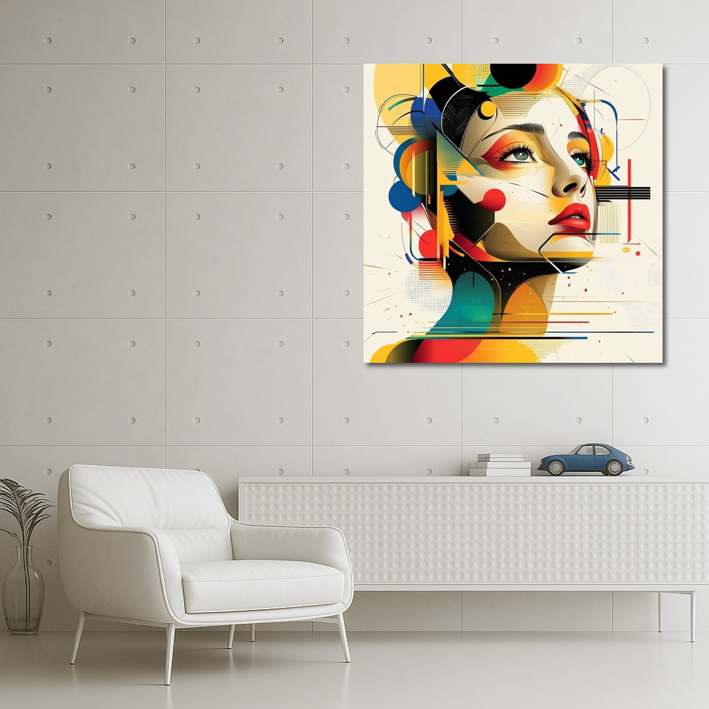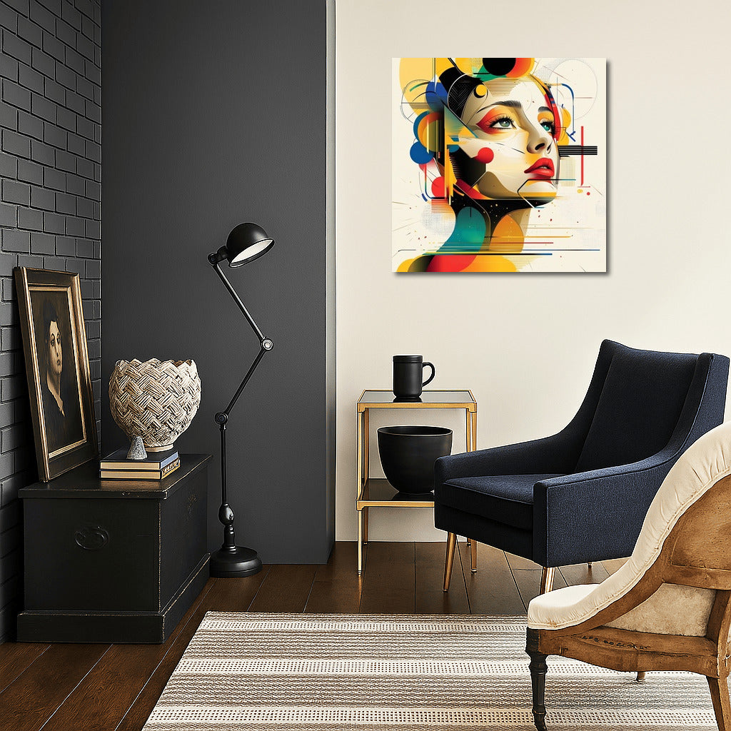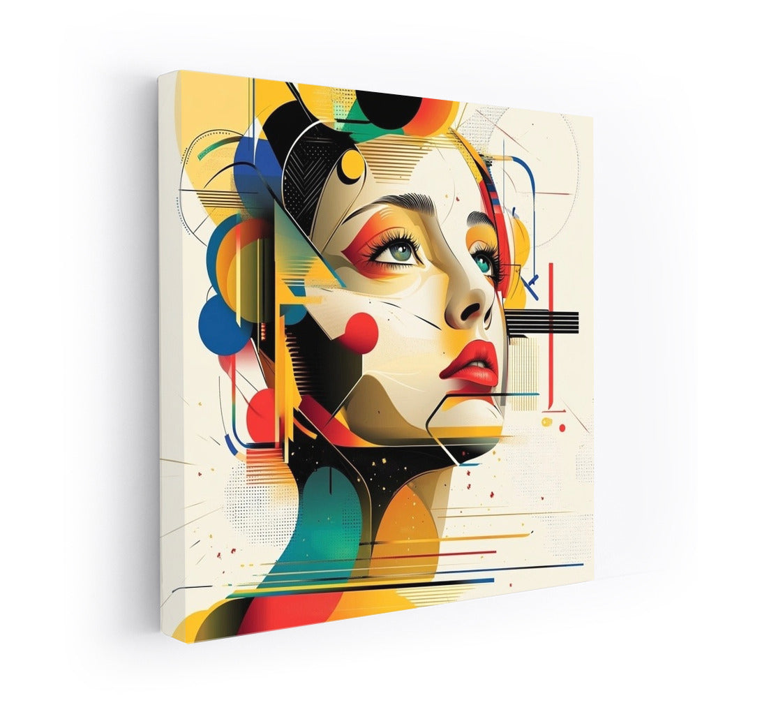 Abstract painting with vibrant geometric elements creating a unique wall art with a dreamy atmosphere. See more from the collection: Mixed Wall Art
