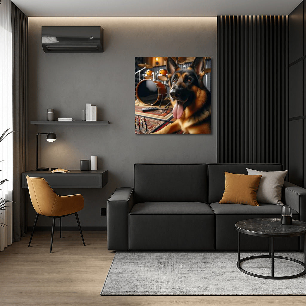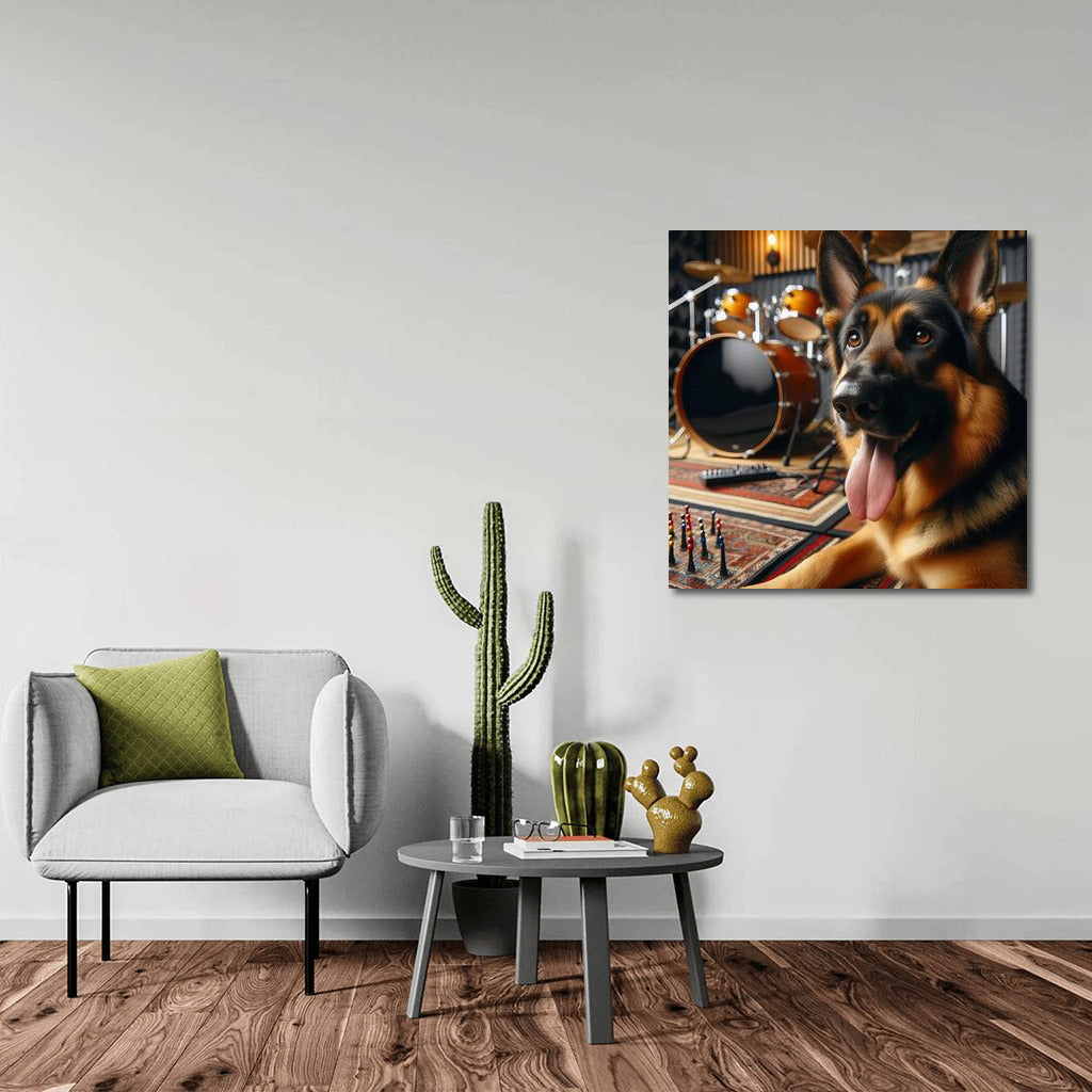 German Shepherd in Music Studio Poster - Vibrant wall art for music and animal lovers! See more from the collection: Animals Art