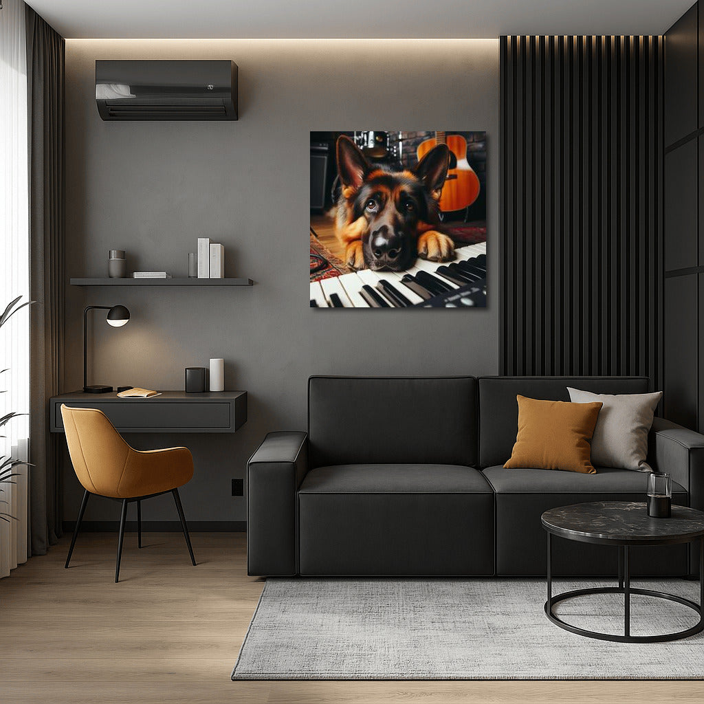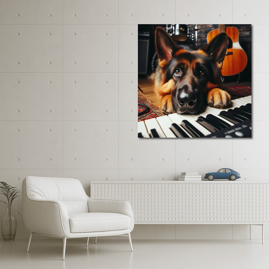 German Shepherd in the Music Studio: Harmony of Sounds and Barking Wall Art