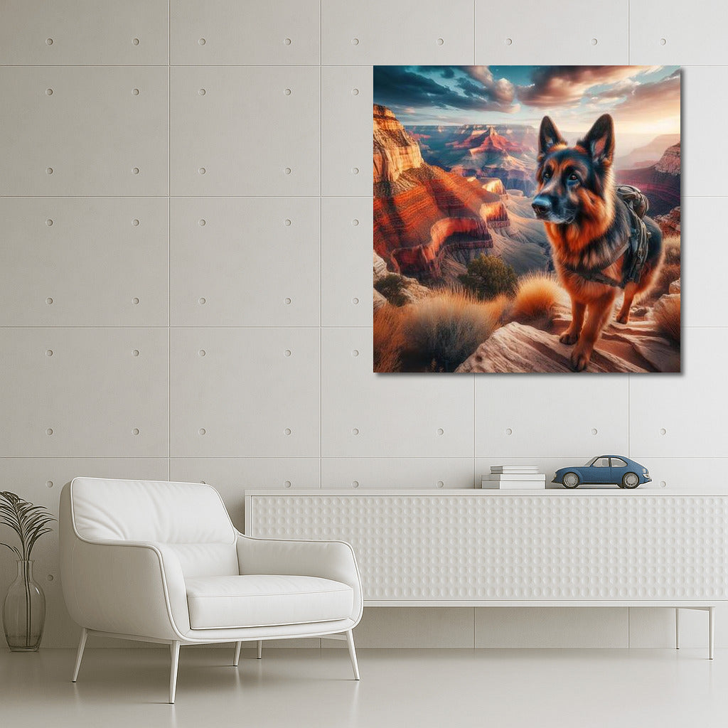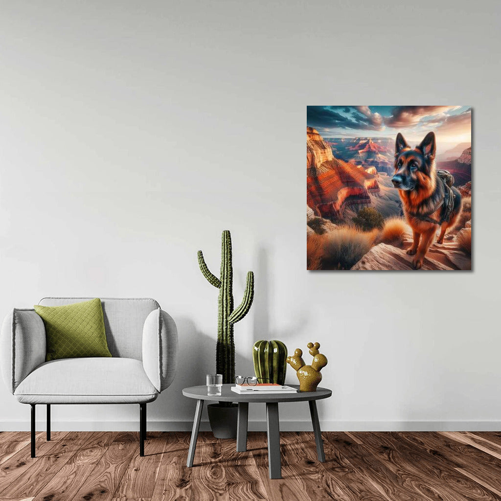 German Shepherd on the Grand Canyon Trail: Journey Among the Glittering Rocks Wall Art