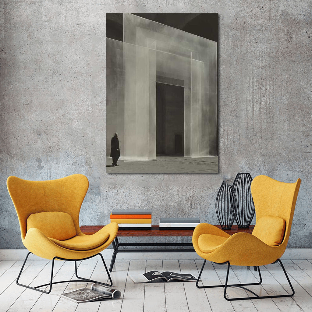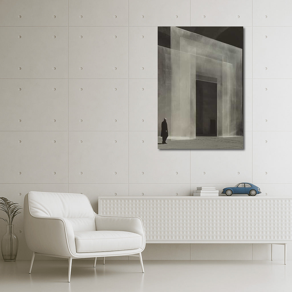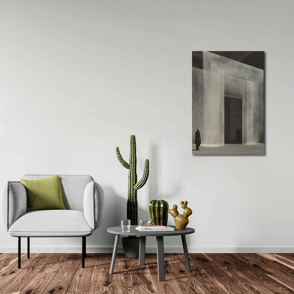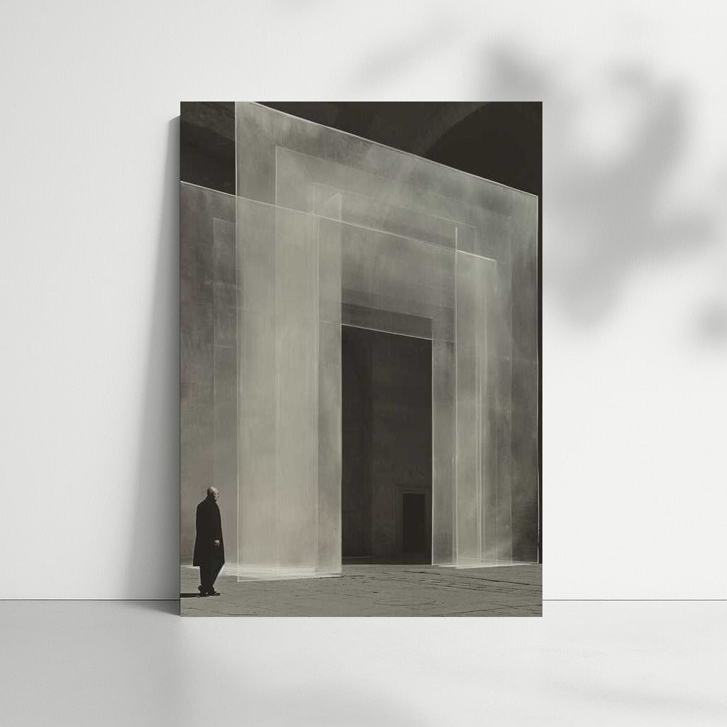 Ghost Gate: Isometric Surrealism in Black and White Wall Art