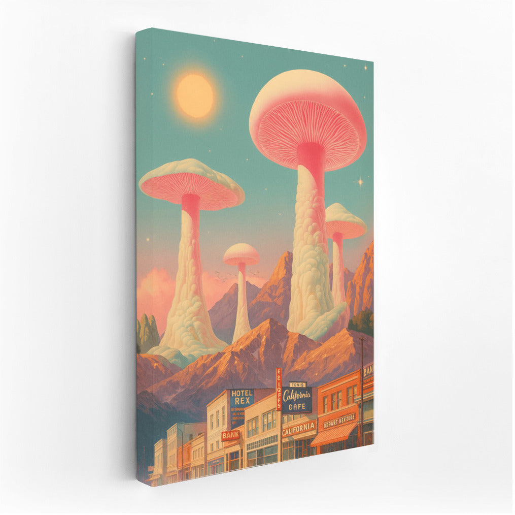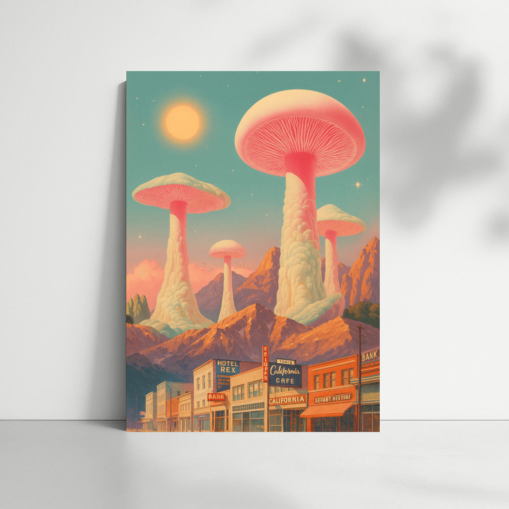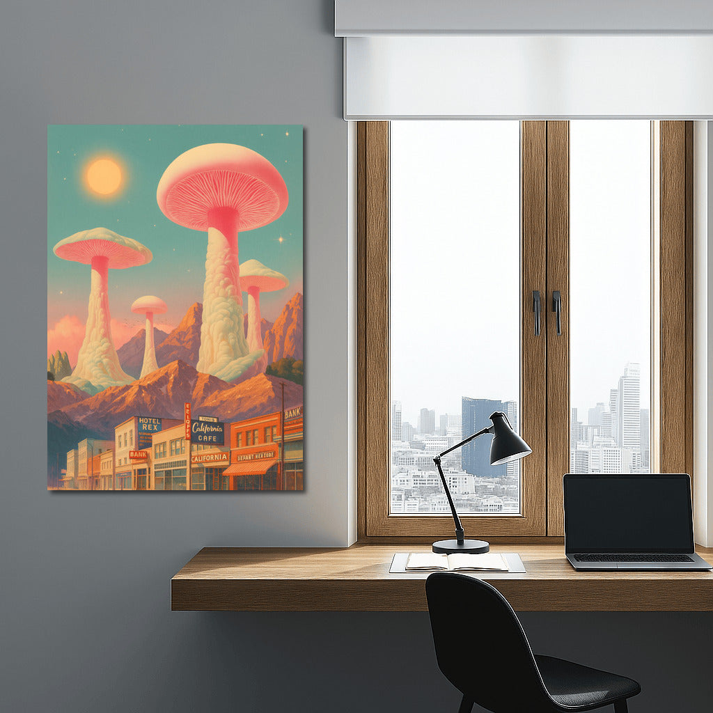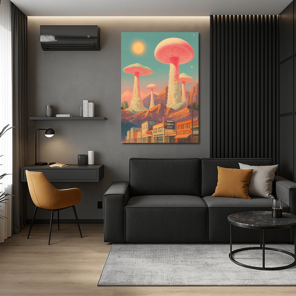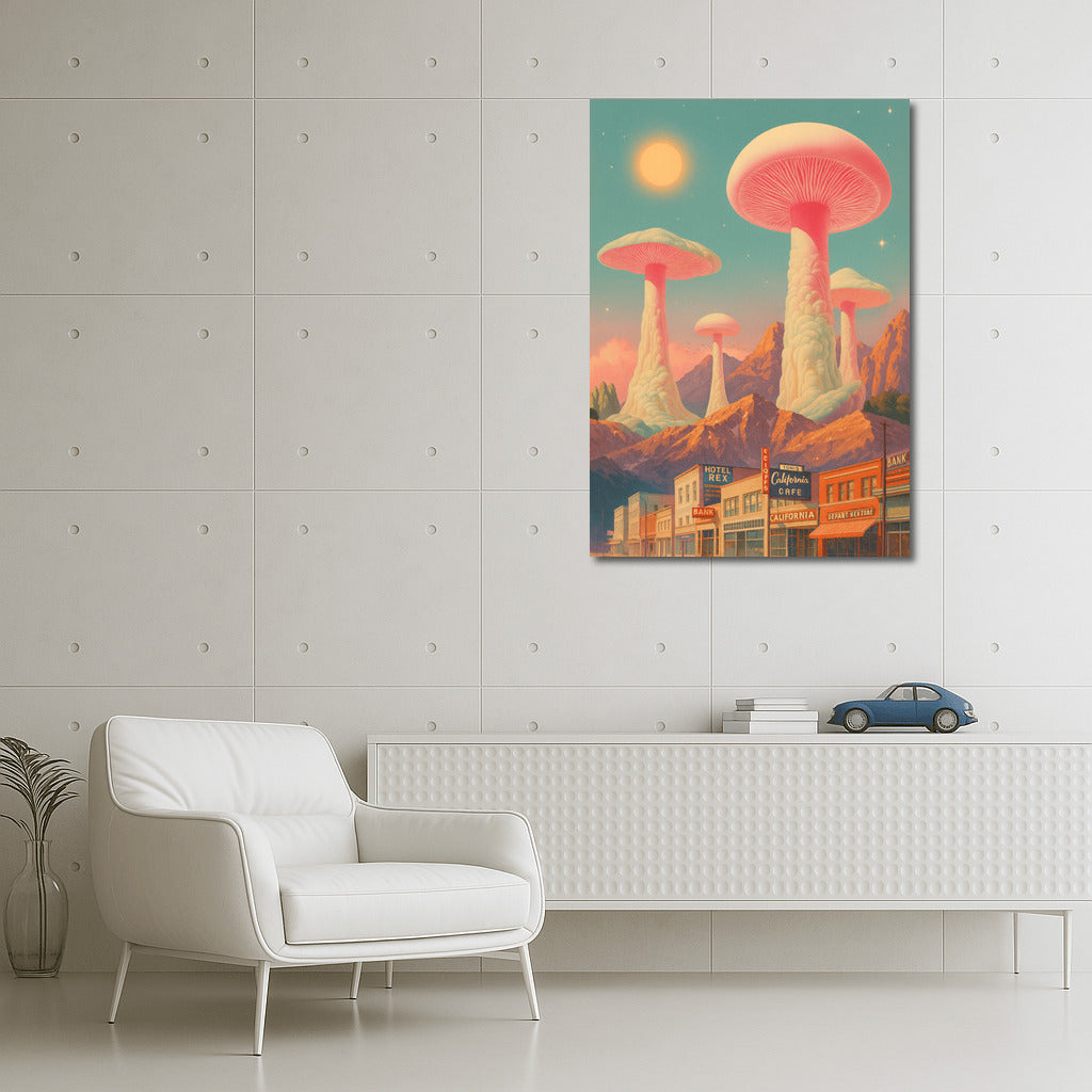 Giant Mushrooms of Sunset Town: Path to the World of Trippy Wall Art
