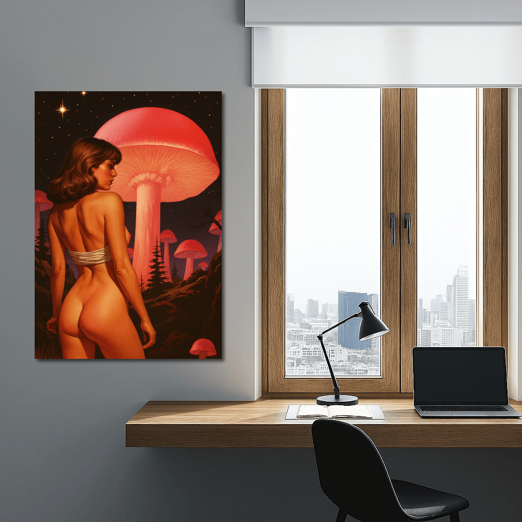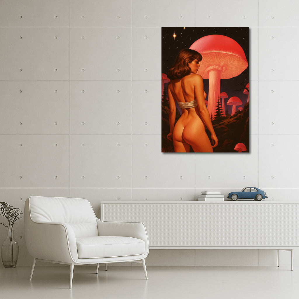 Giant Mushrooms Under the Starry Sky: Trippy Fantasy World Wall Art