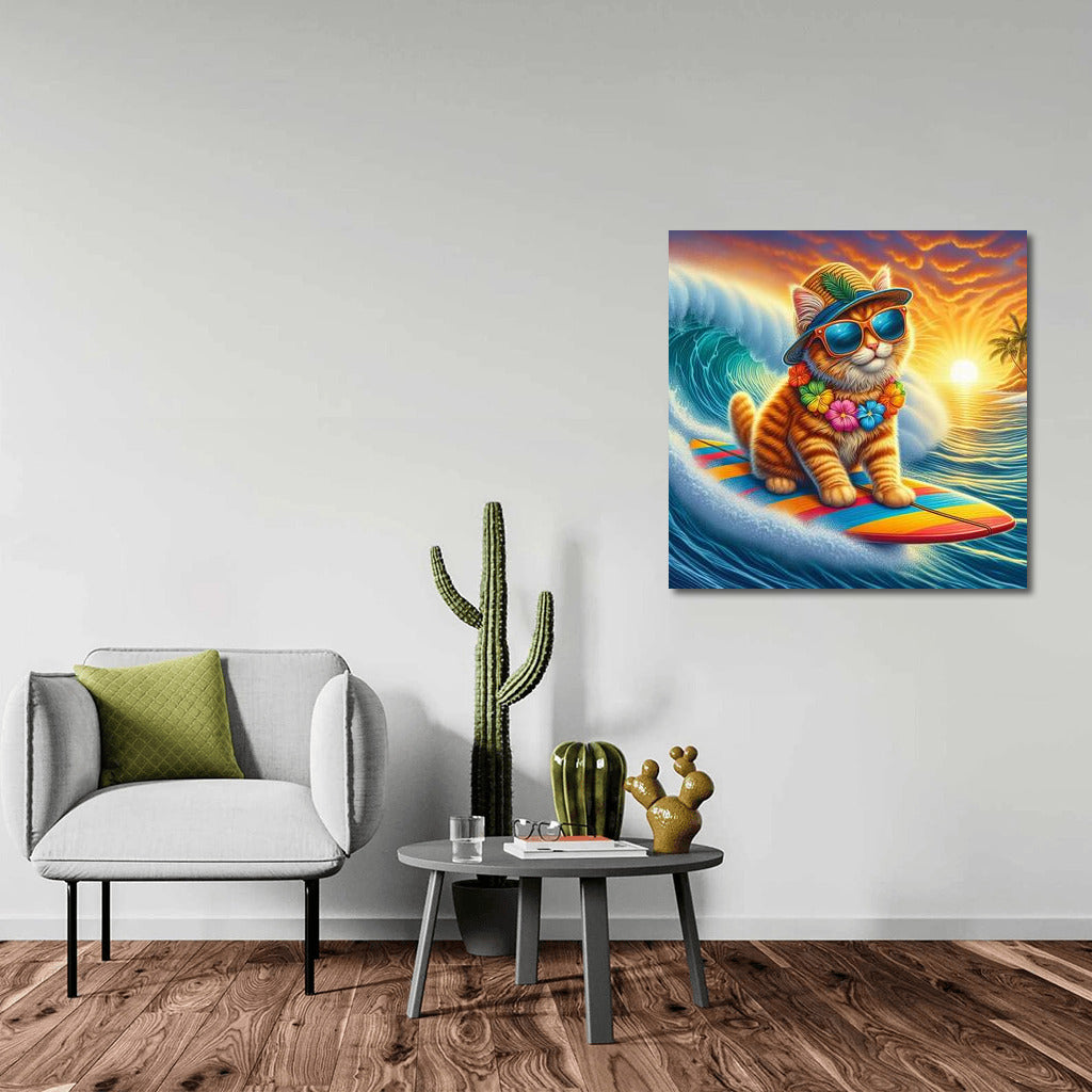 Giant Wave Surfer Cat: The Furry Hero of Sunset Wall Art