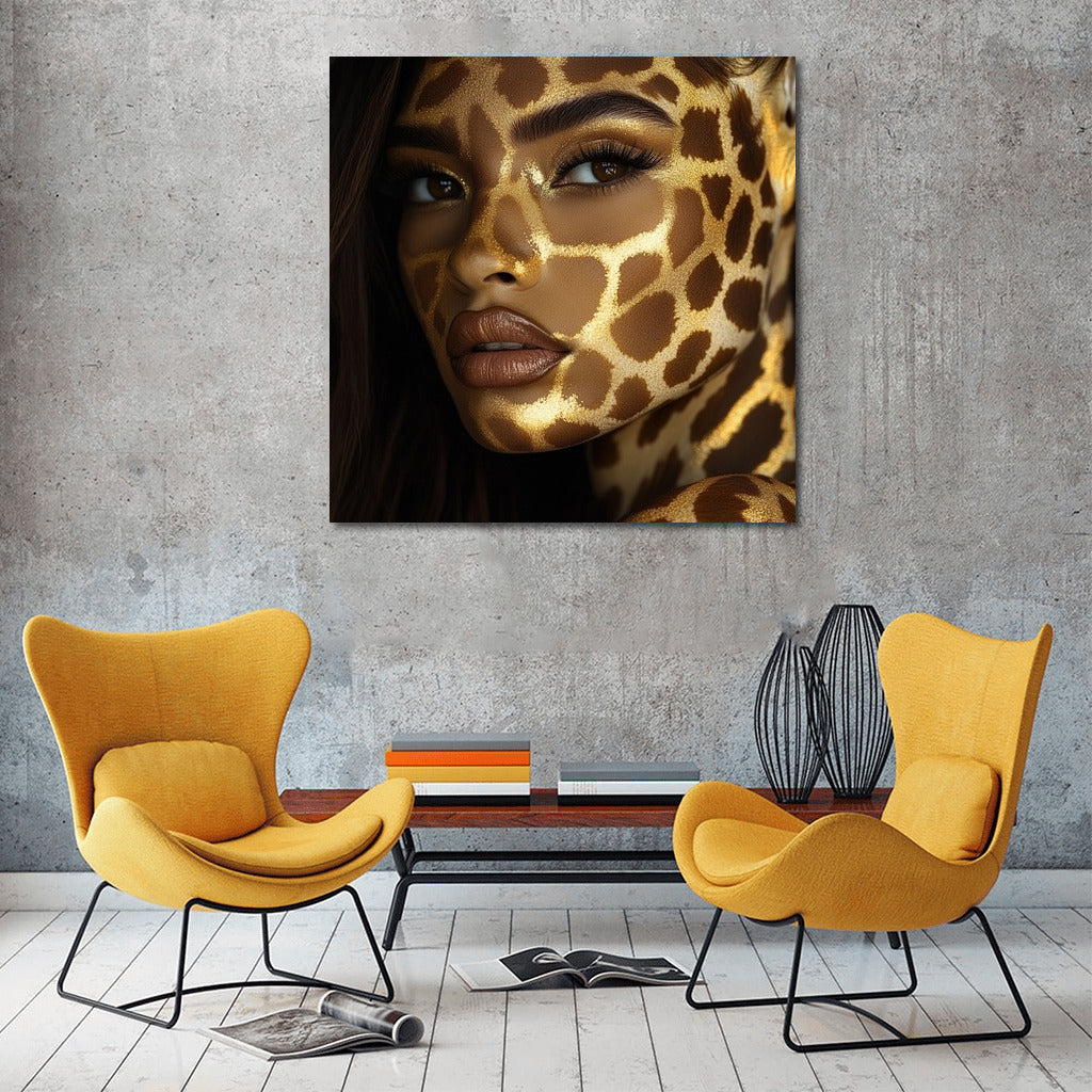 Exotic Wall Art: Eye-catching beauty in giraffe spots. This vibrant painting will liven up your interior. See more from the collection: Wall Art with Women
