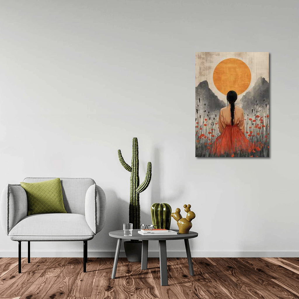 Girl in Red: Japanese Minimalism and the Tranquility of Sunrise Wall Art