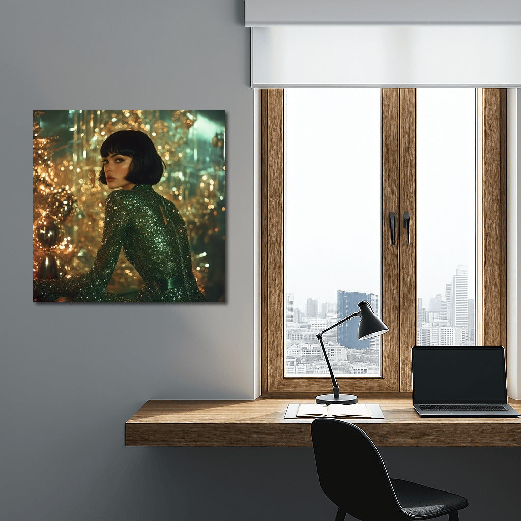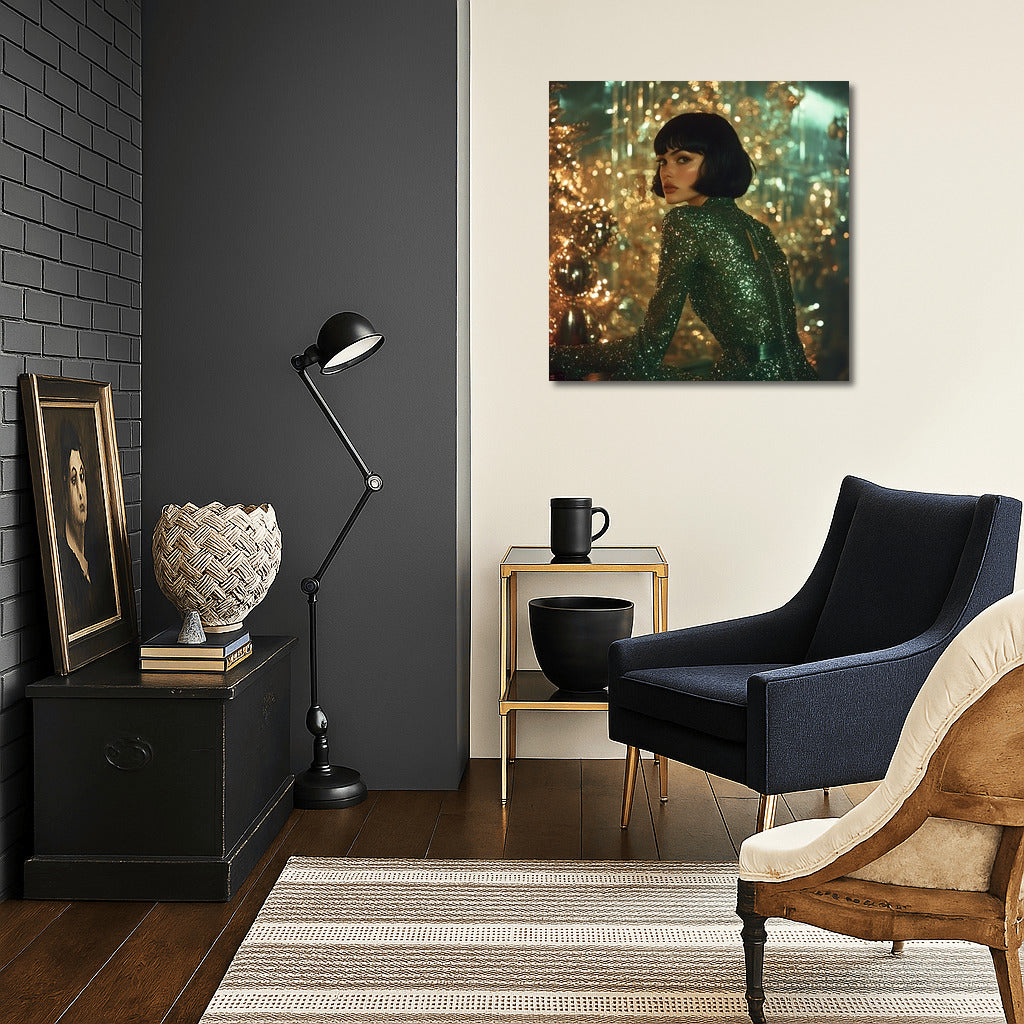 Sparkling wall art: a mysterious figure in glitter and glamour. Magic and style create an unforgettable atmosphere. See more from the collection: Wall Art with Women