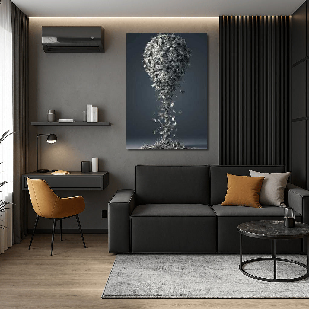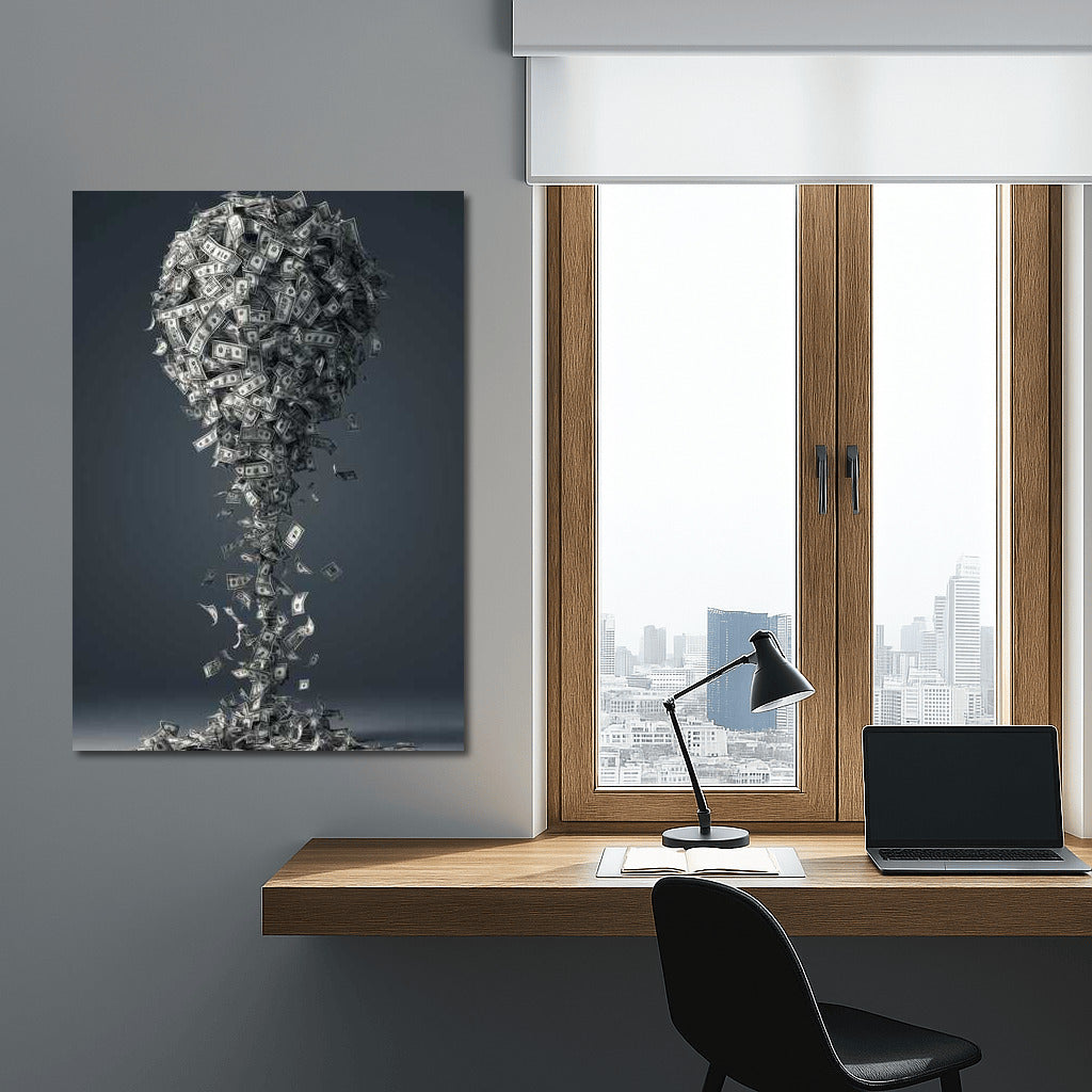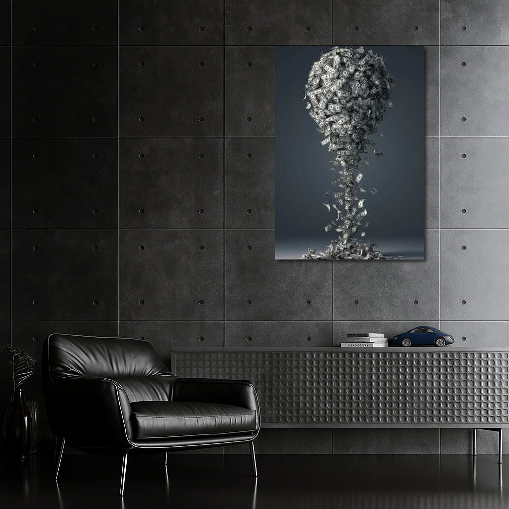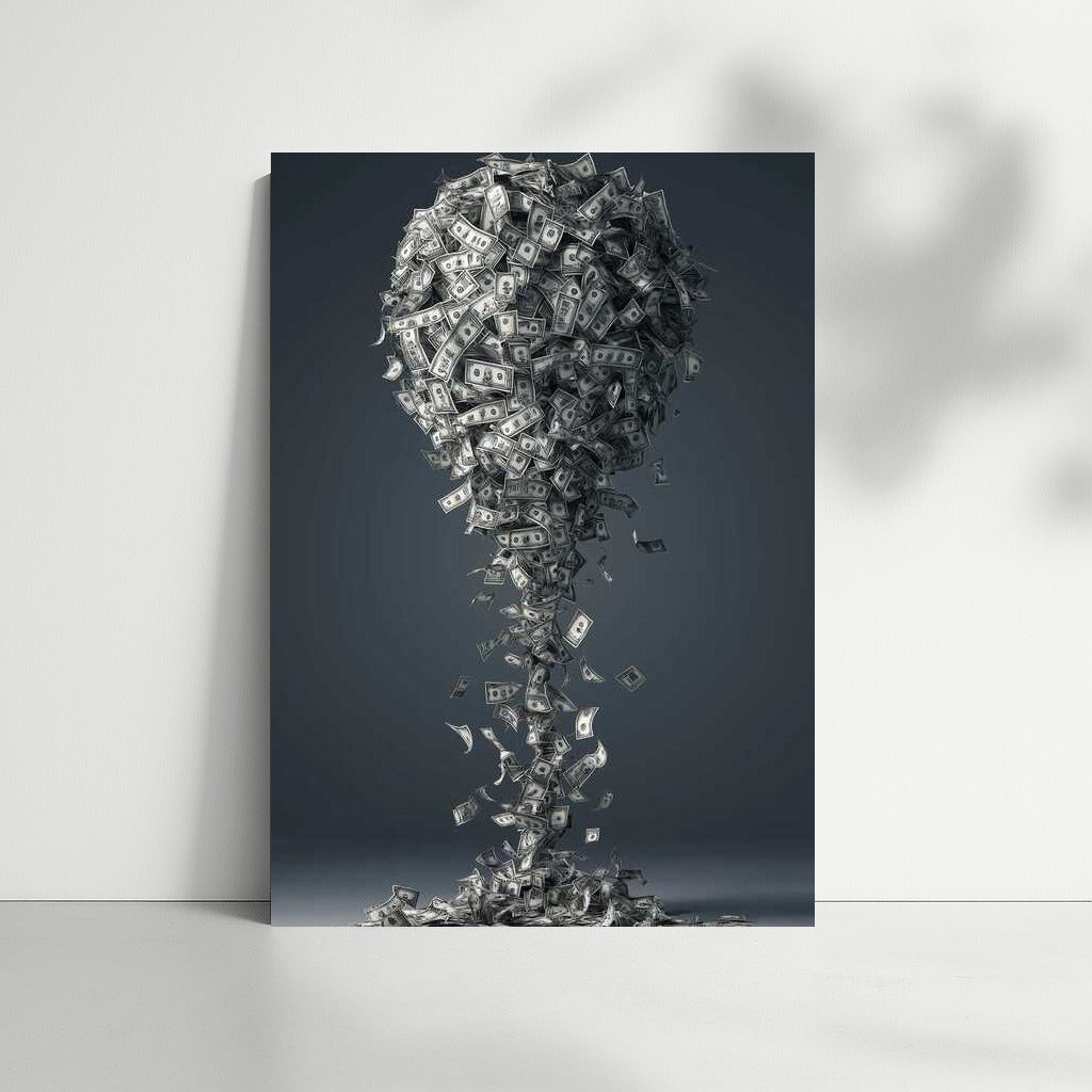 Glass of Abundance: Vortex of Banknotes and Luxury Wall Art