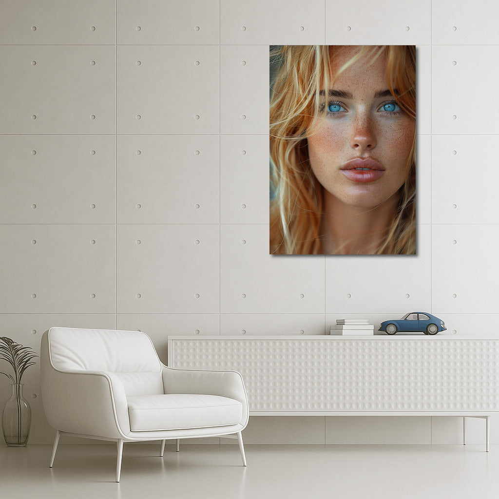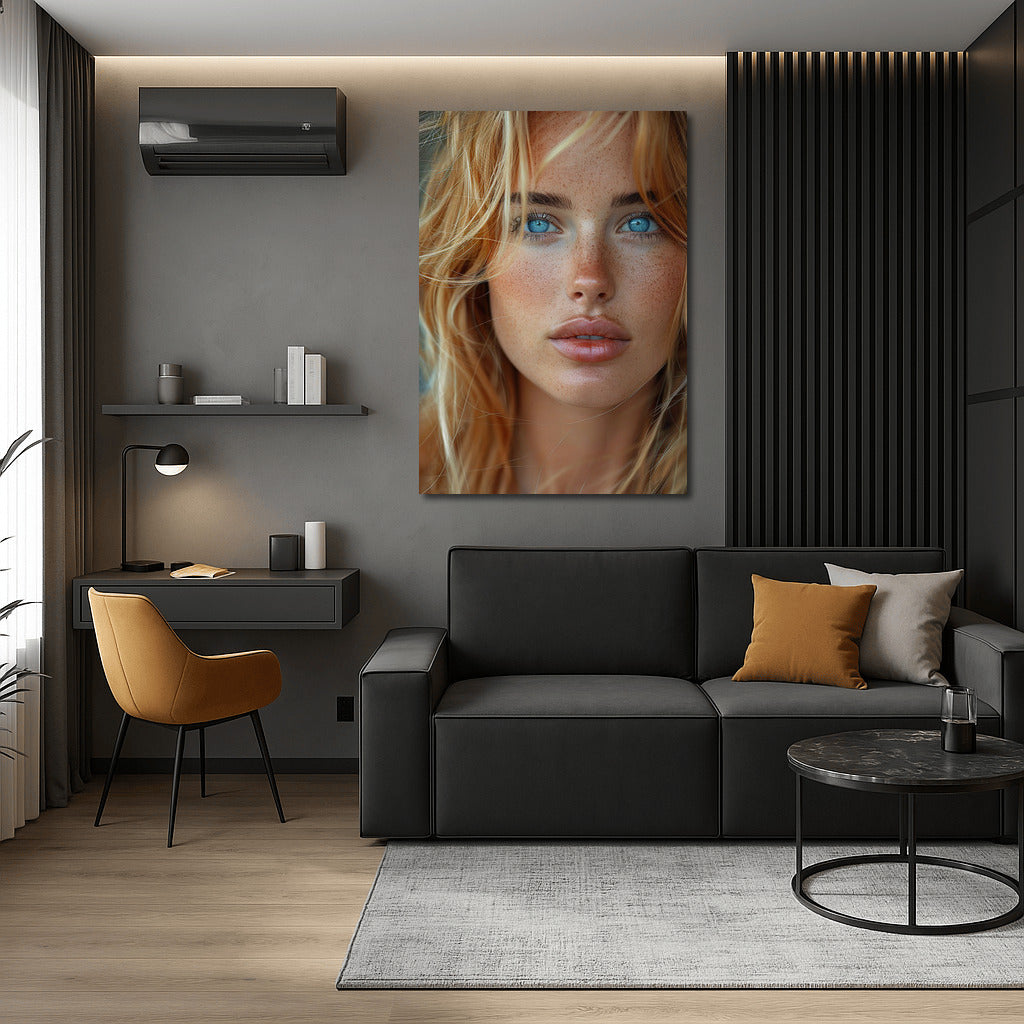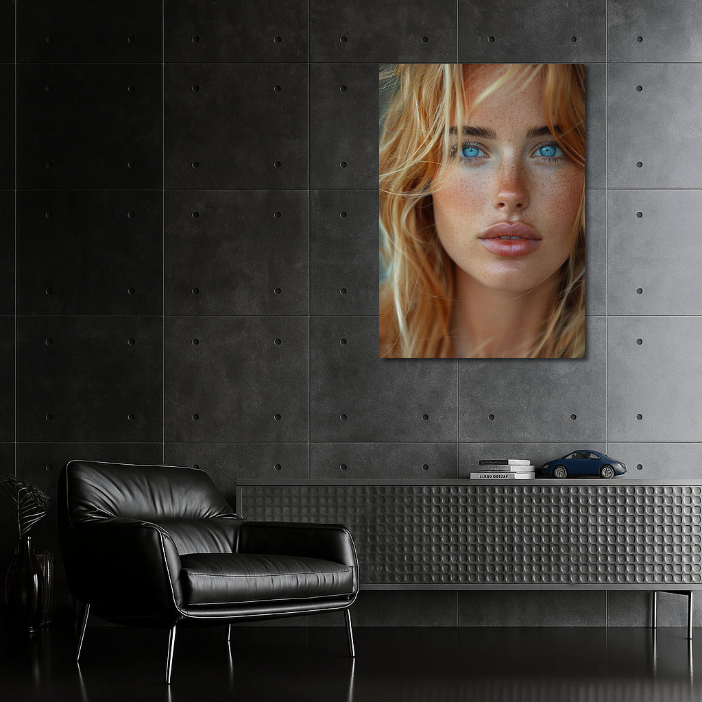 An elegant painting of a young girl's portrait shimmers with tenderness and mystery, filling the space with inspiration and warmth. Wall art. See more from the collection: Wall Art with Women