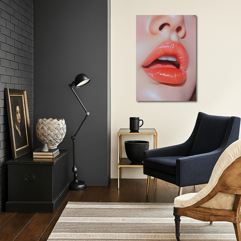 Seductive lips in a glossy shine: a poster that will enliven any space and create an atmosphere of mystery! See more from the collection: Mixed Wall Art