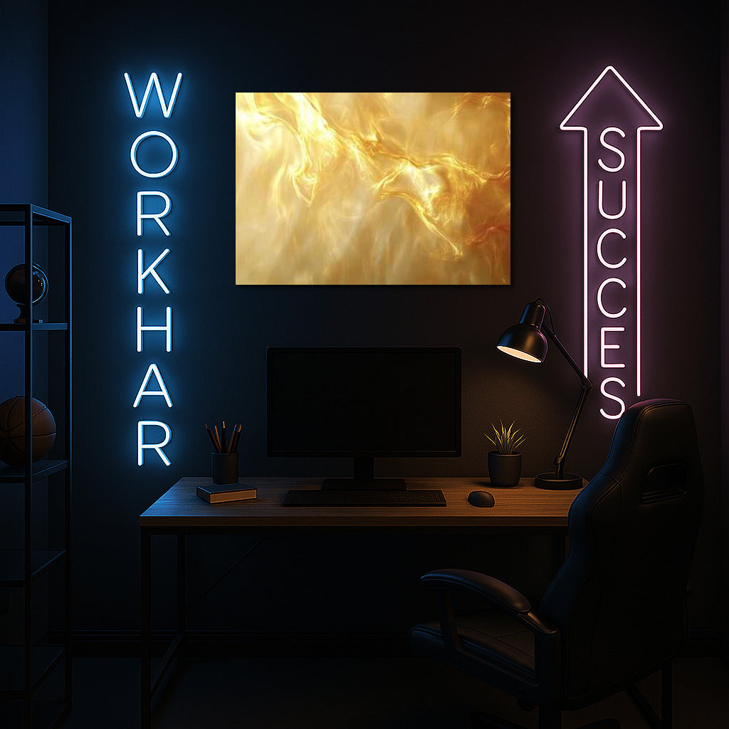 Immerse yourself in the glow of infinity with the Abstract Glist poster. This wall art fills the space with golden energy. See more from the collection: Abstract Art