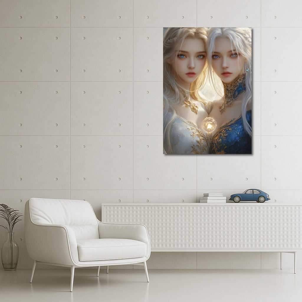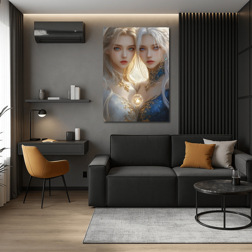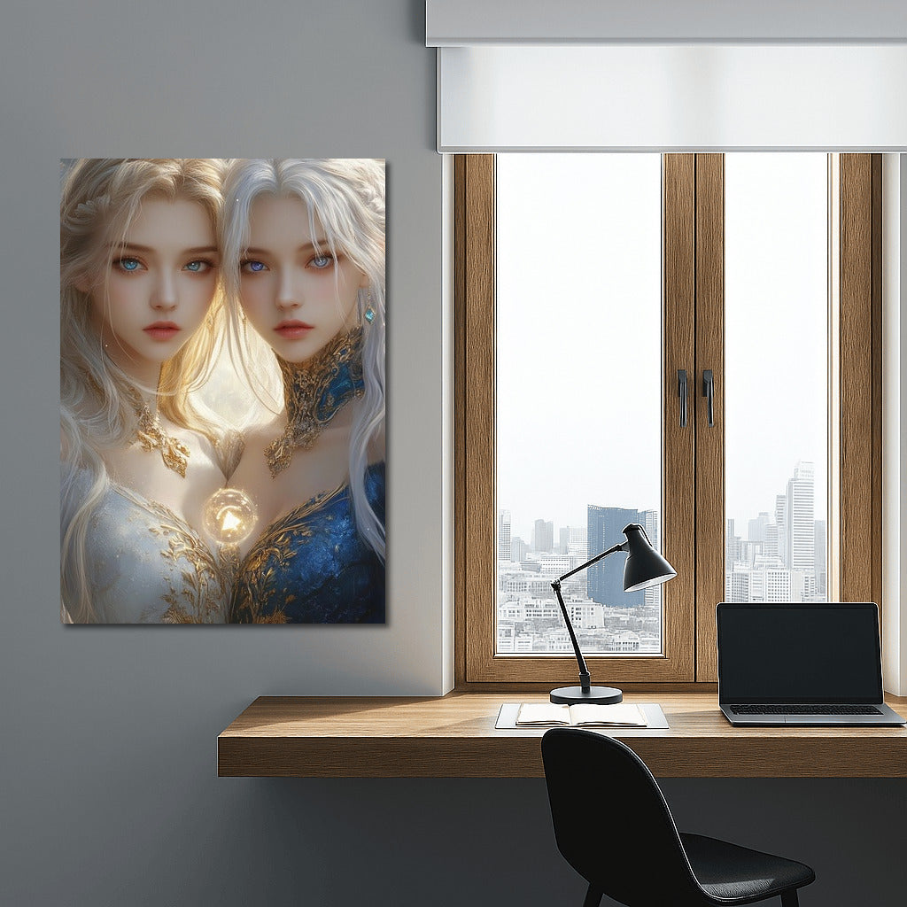 Magic and grace in every stroke: this poster invites you to a world of elegance and fantasy, illuminated by the radiance of the soul. See more from the collection: Wall Art with Women