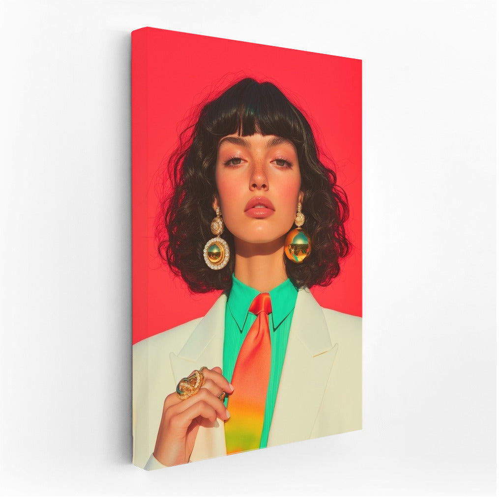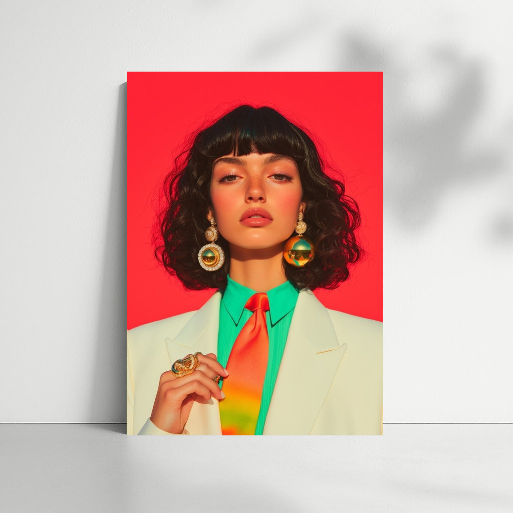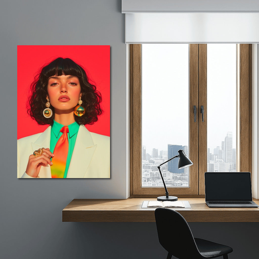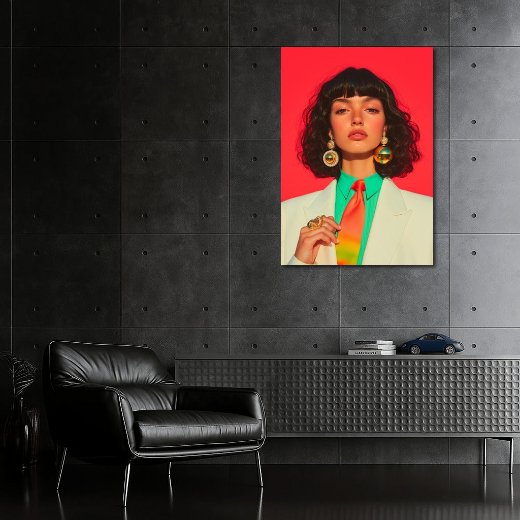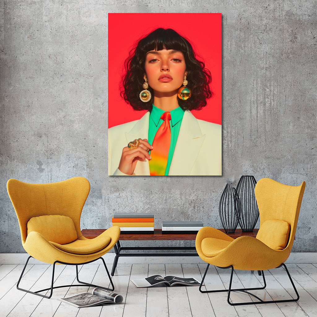 Bright painting with a spectacular lady on a red background. Stylish poster for inspiration and accent in your interior. Wall art. See more from the collection: Wall Art with Women
