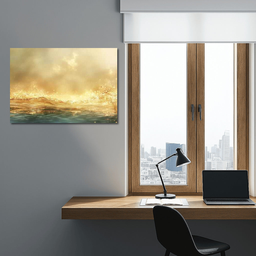 Immerse yourself in the magic of light with the Abstract Glist poster. This wall art will envelop your space in golden glow and harmony. See more from the collection: Abstract Art