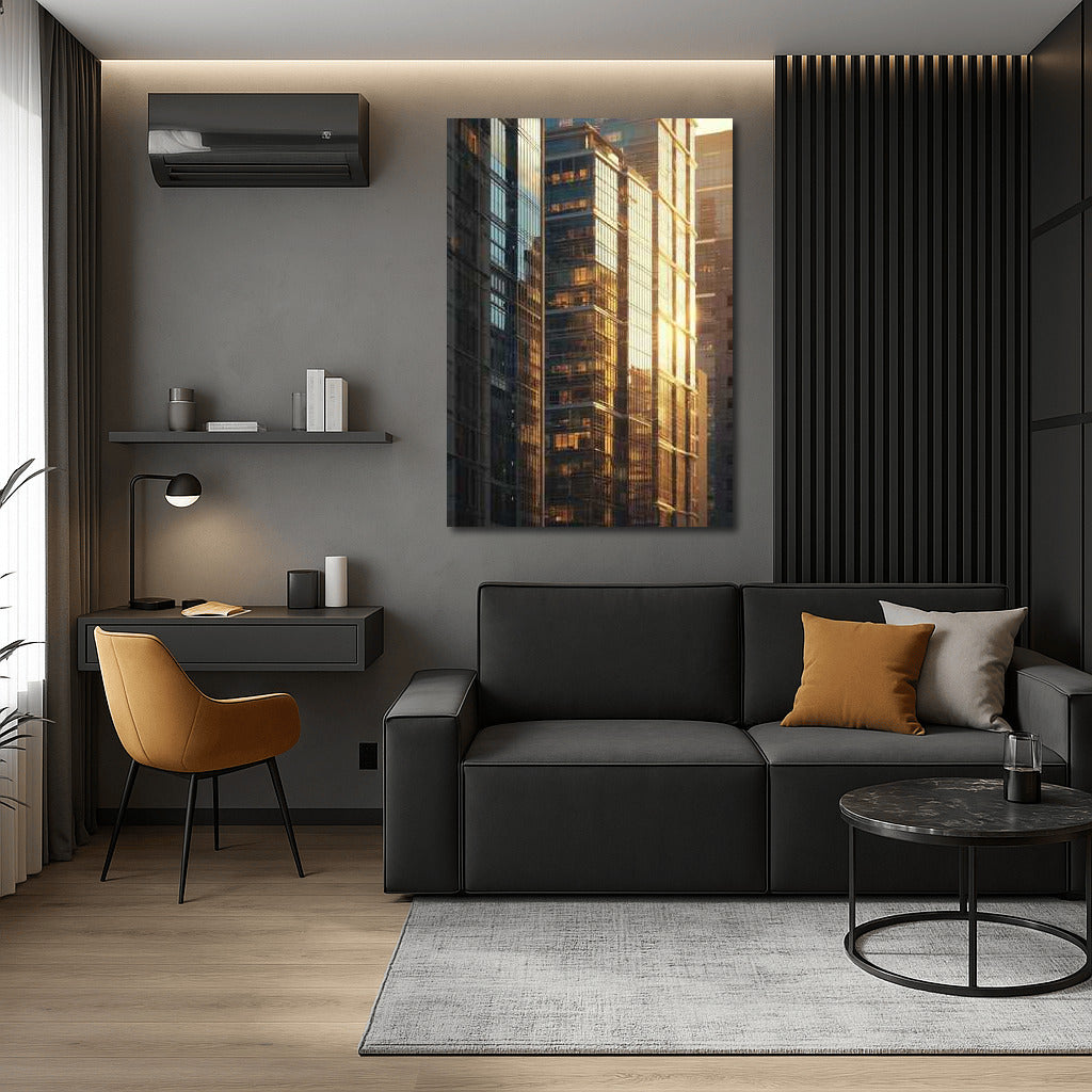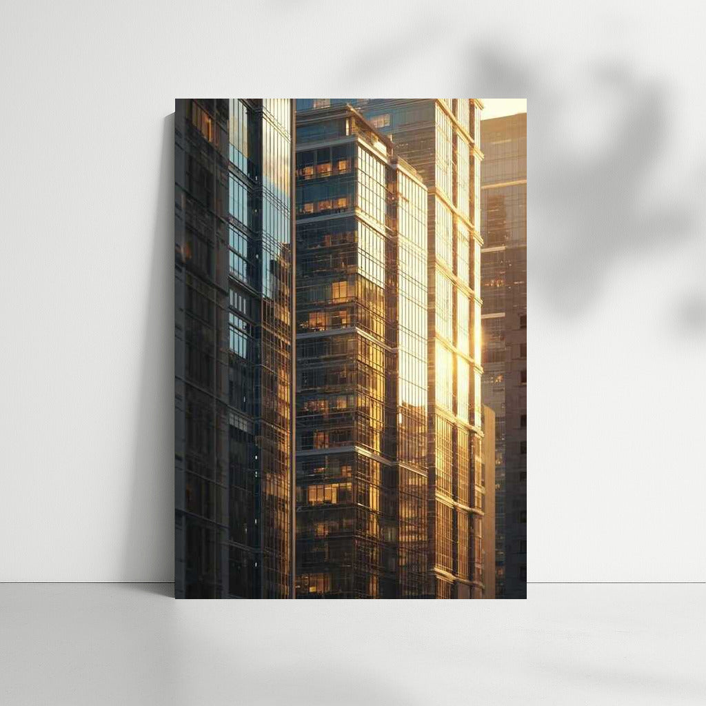 Golden Glow of Glass Giants: Modern Architecture and Buildings Wall Art