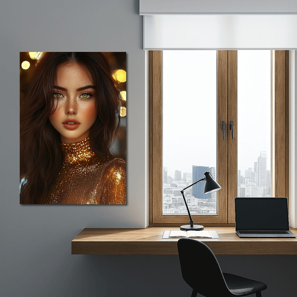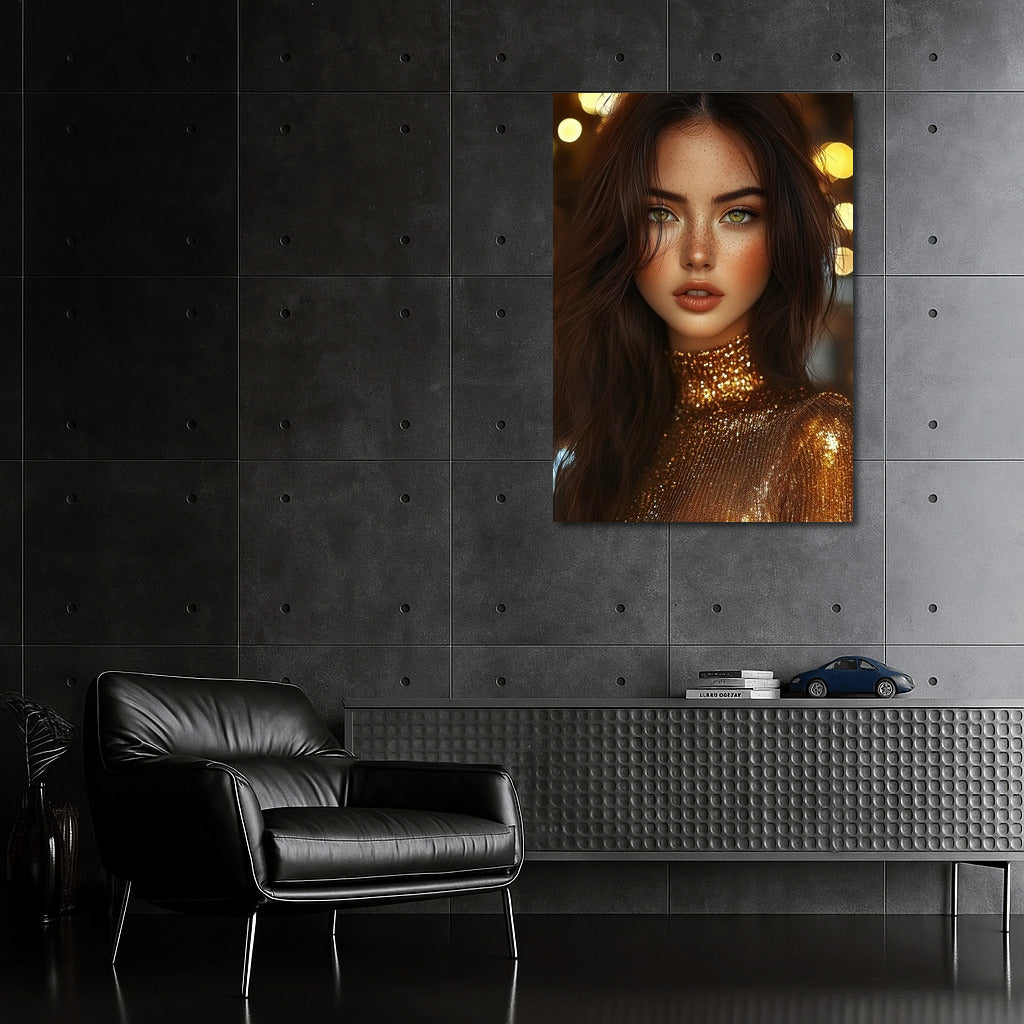 Mesmerizing wall art: a shining figure in golden light. A perfect accent for your interior. ✨ #painting #poster See more from the collection: Wall Art with Women