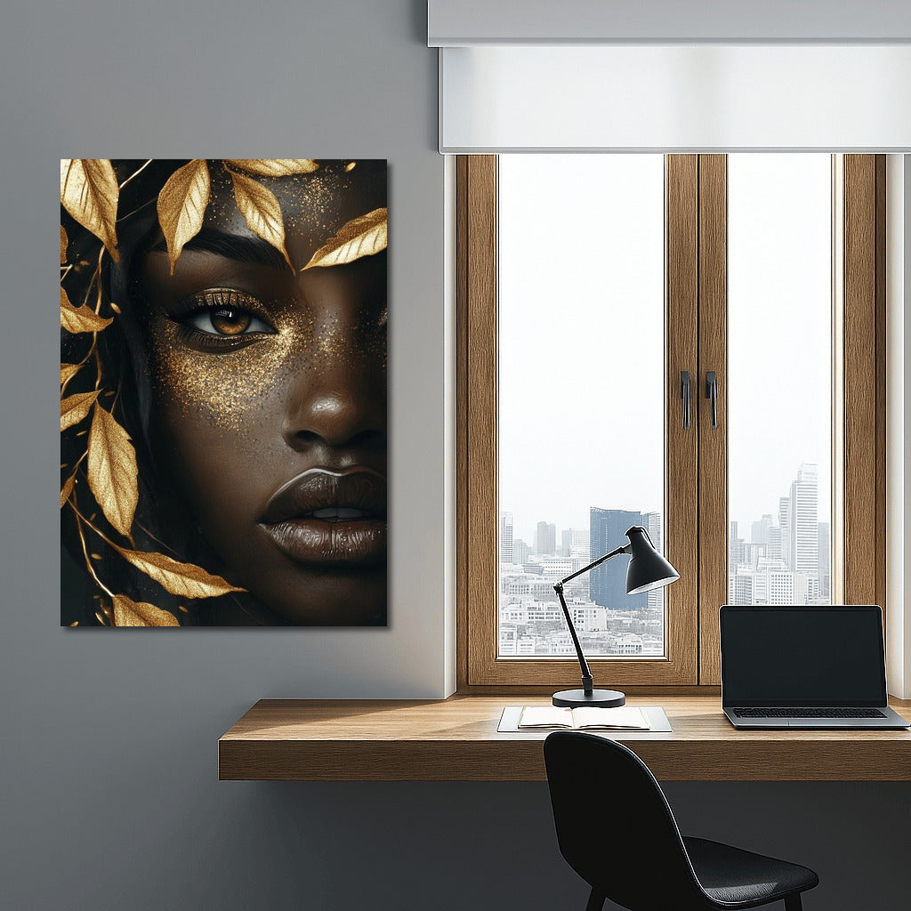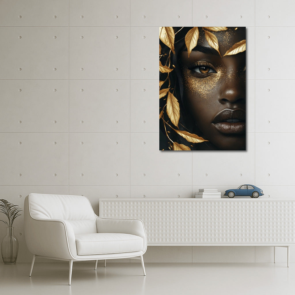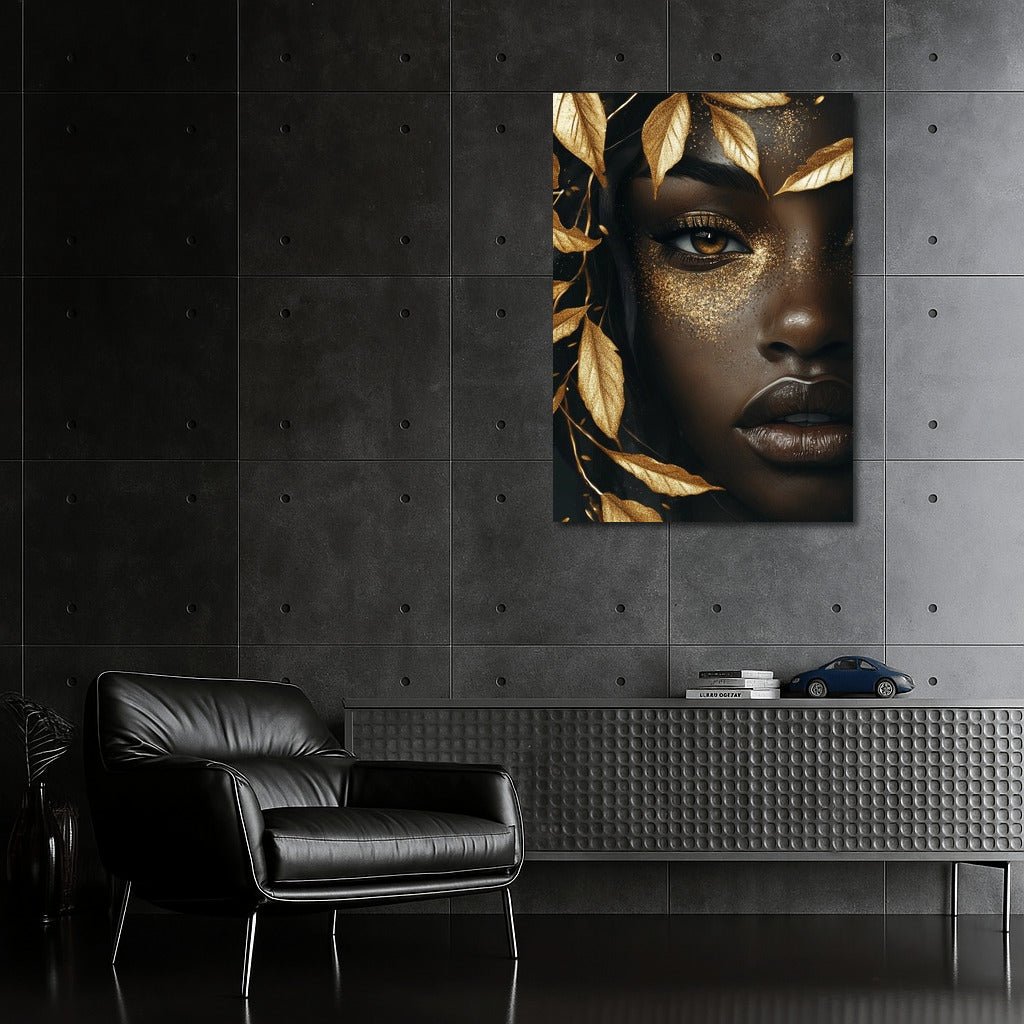 Golden leaves and sparkling details create magic in this painting. The poster will add elegance to any space. See more from the collection: Mixed Wall Art