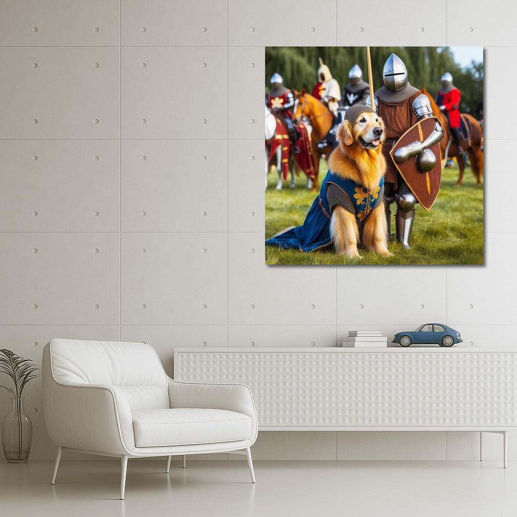 Dive into the era of chivalry with the poster: Golden Retriever at a medieval tournament - brilliance and courage on canvas! See more from the collection: Animals Art