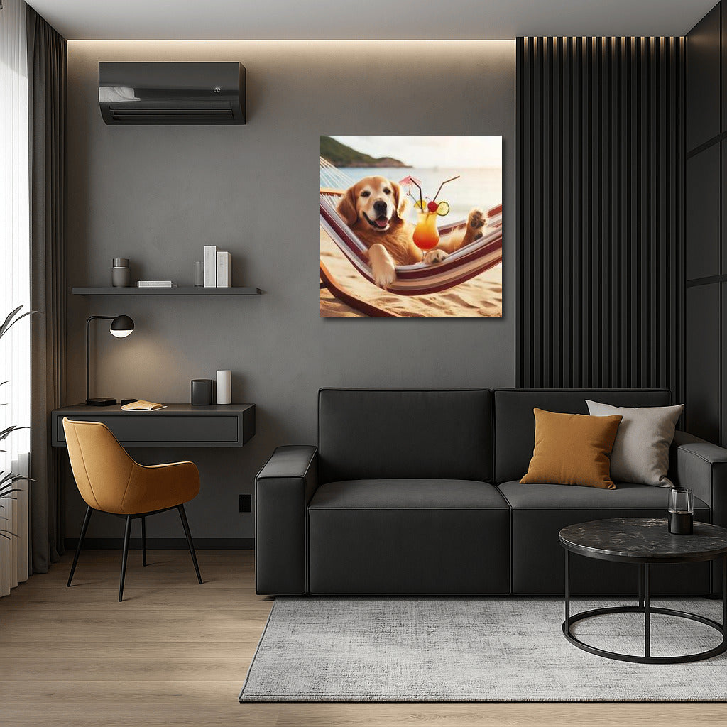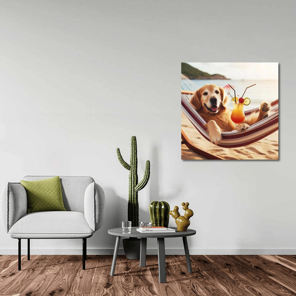 Golden Retriever in a Hammock: Summer Beach Fun with a Cocktail Wall Art