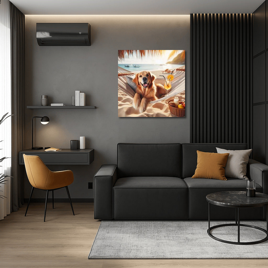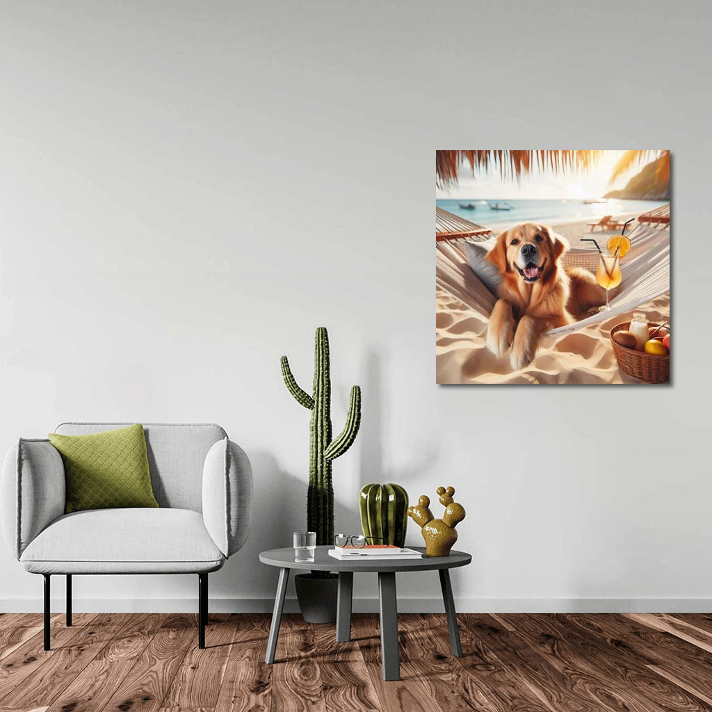 Golden Retriever on the Beach: Cocktail and Hammock Wall Art