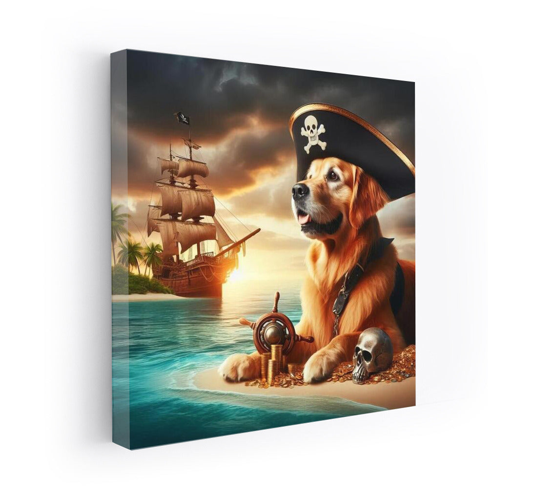 Golden Retriever: Pirate Captain at Treasure Island Wall Art