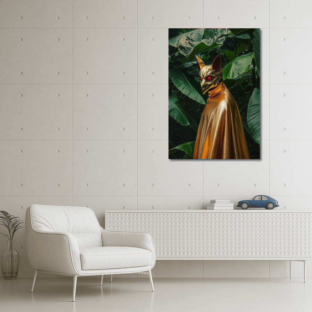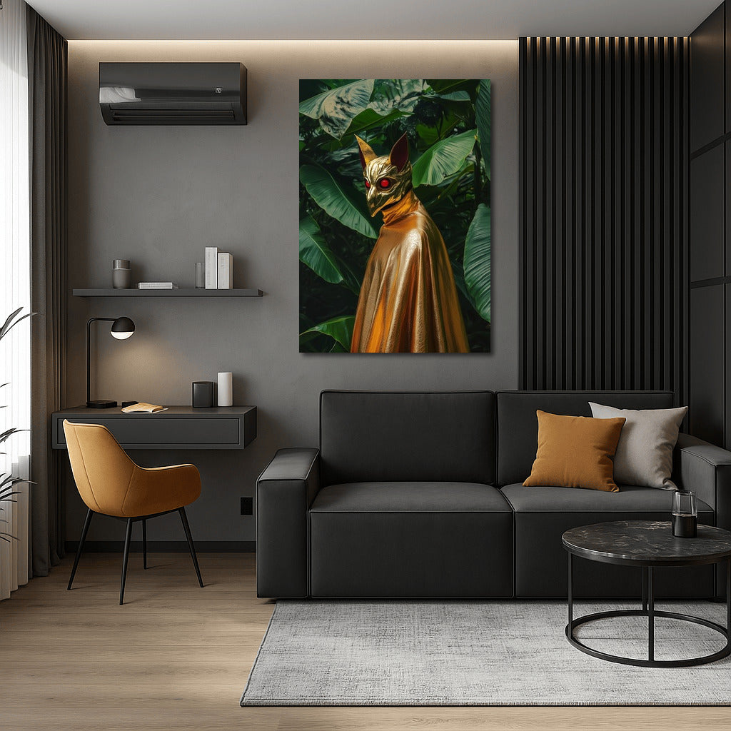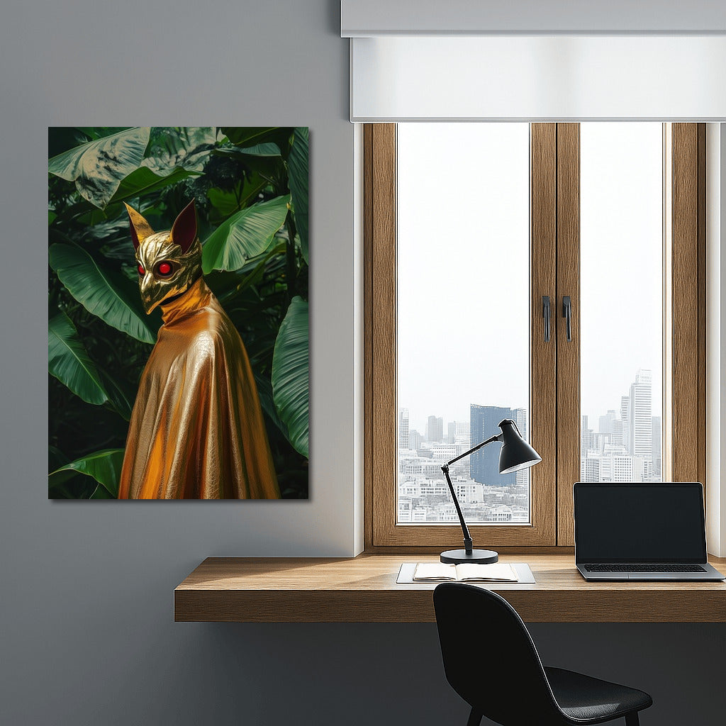 A mysterious silhouette in a golden mask among greenery. This painting turns any interior into a gallery of modern art! See more from the collection: Mixed Wall Art