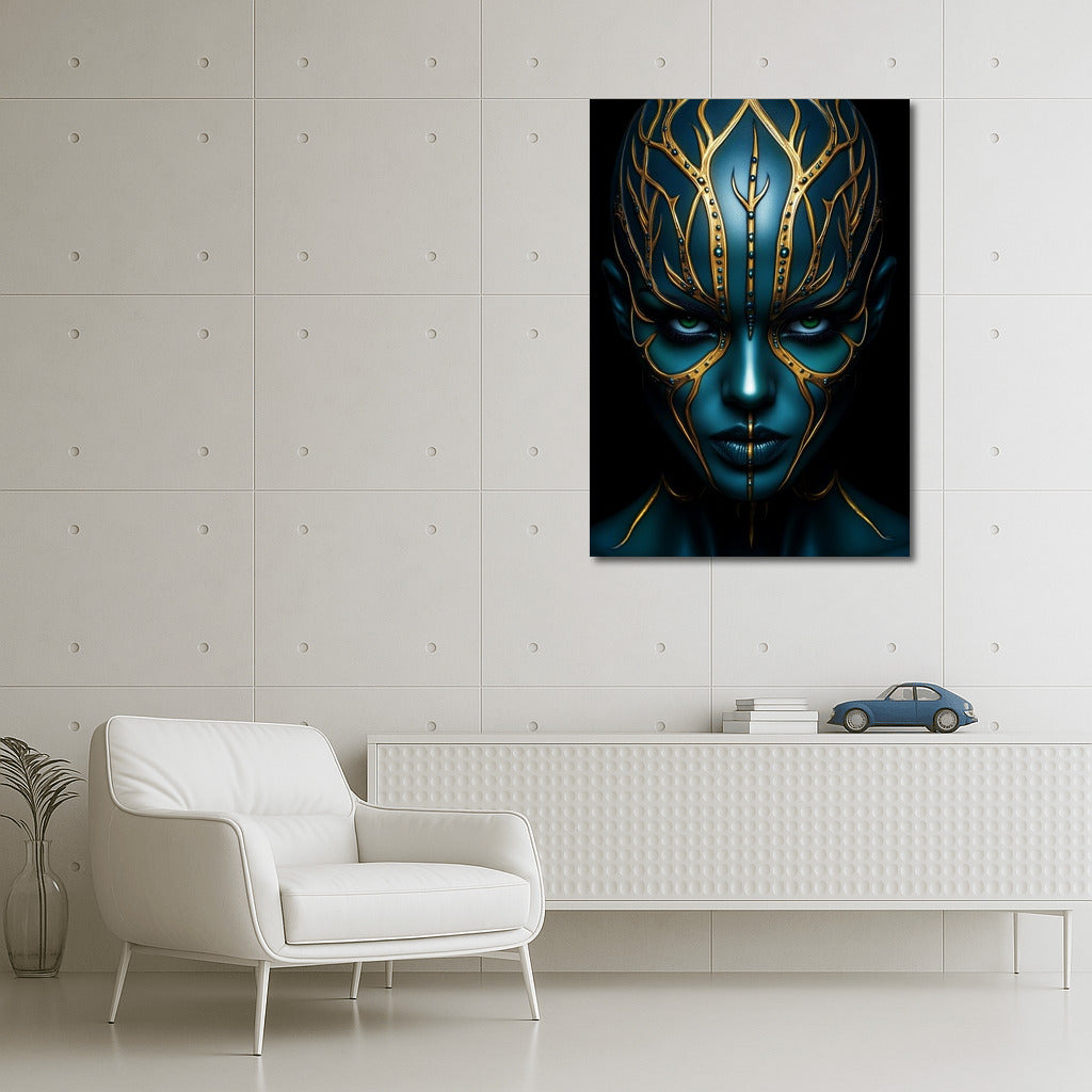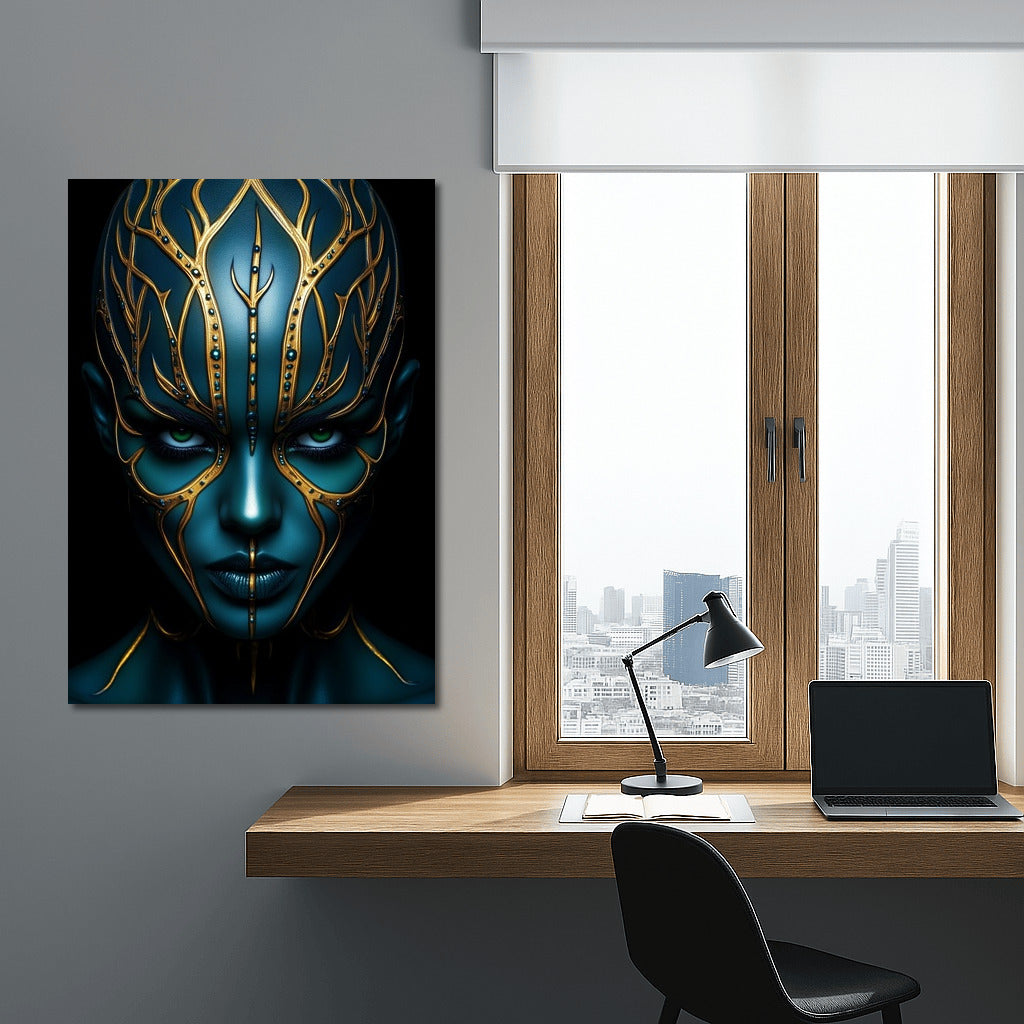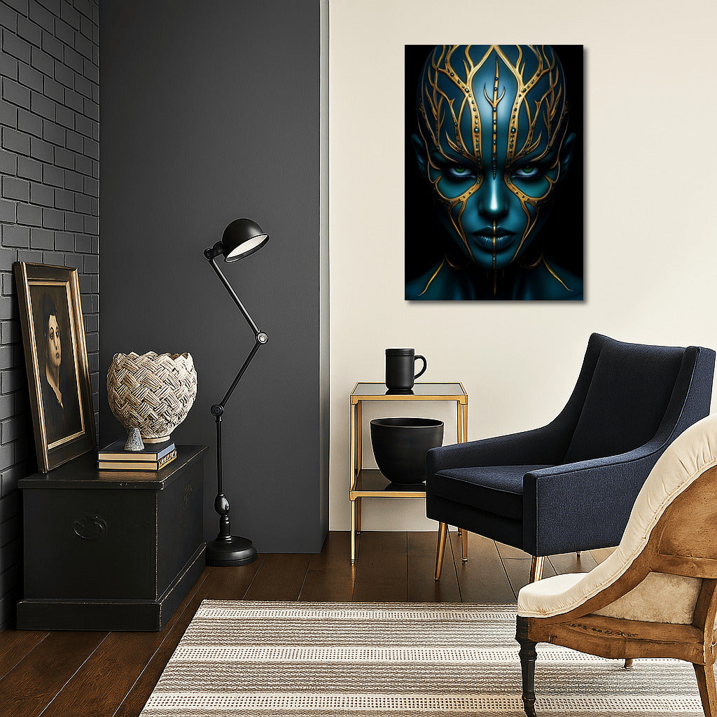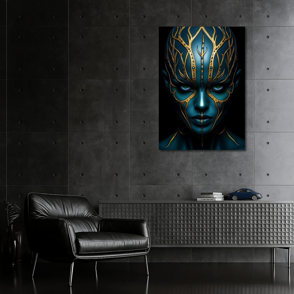 Exquisite painting: mystical creature with golden patterns, fascinates with mystery. Ideal for unique wall art. See more from the collection: Mixed Wall Art