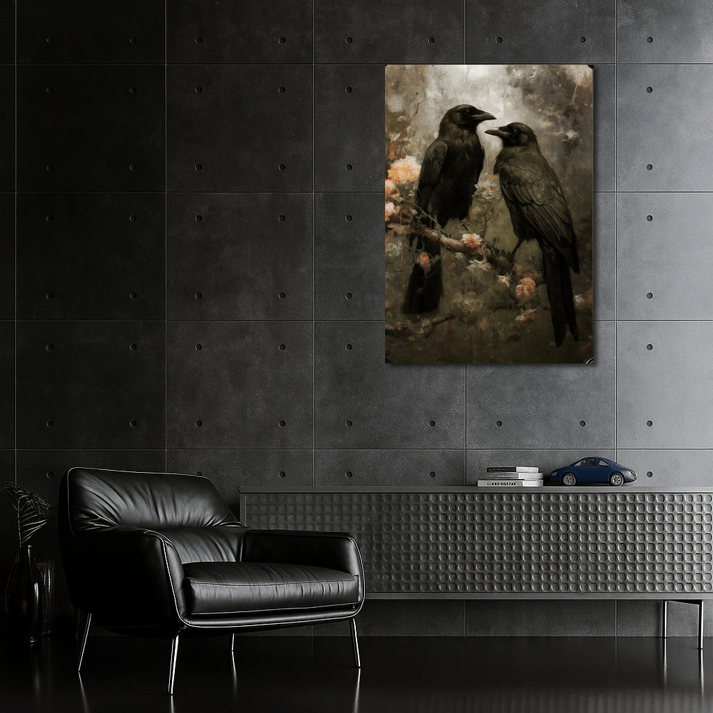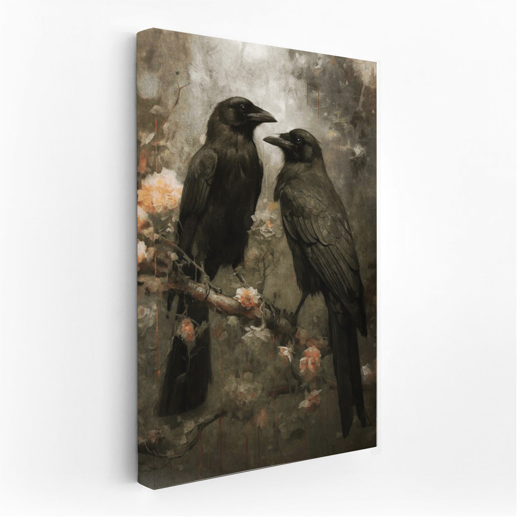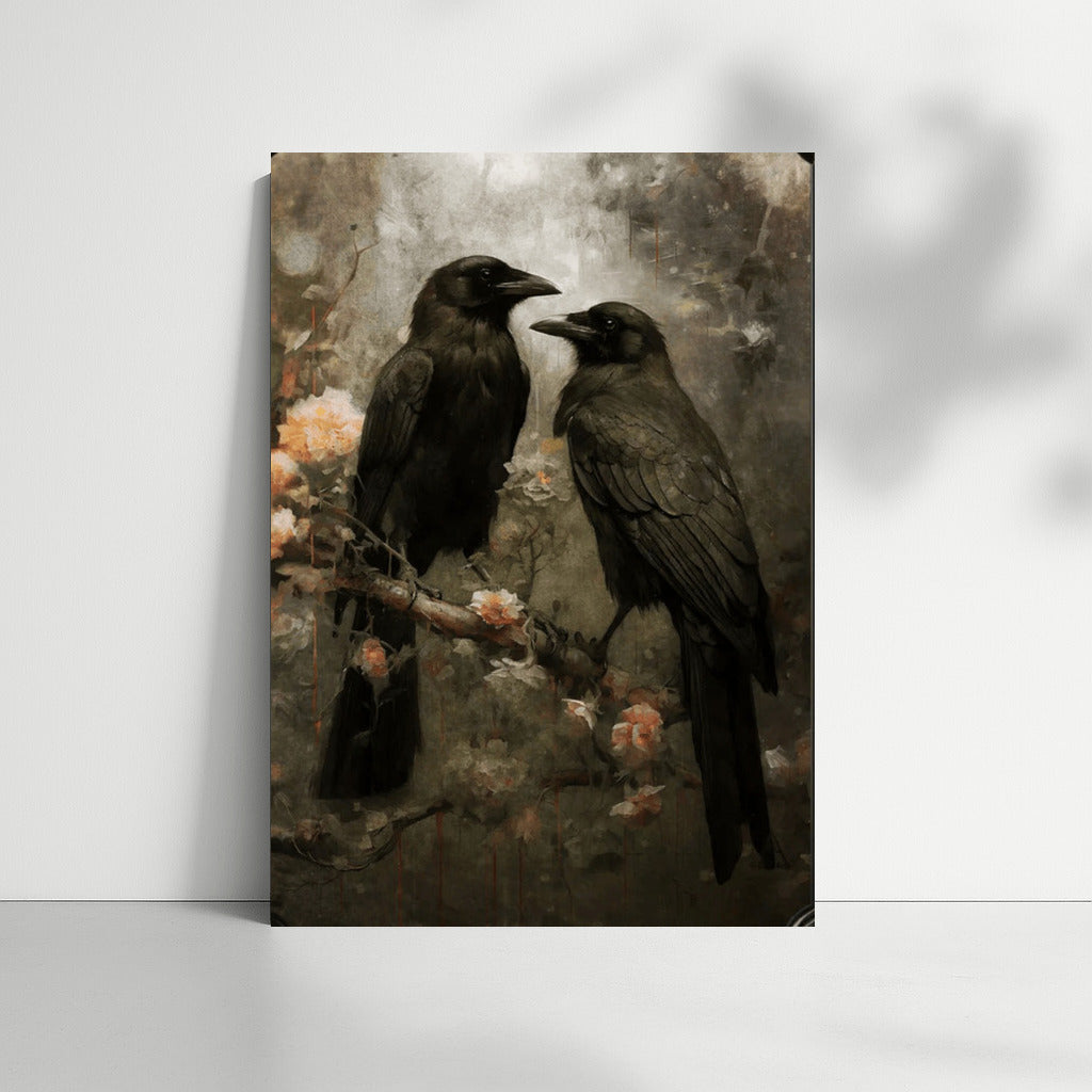 Black crows against a background of mysterious flowers create a gothic masterpiece. A perfect poster for a mystical mood. See more from the collection: Gothic Art