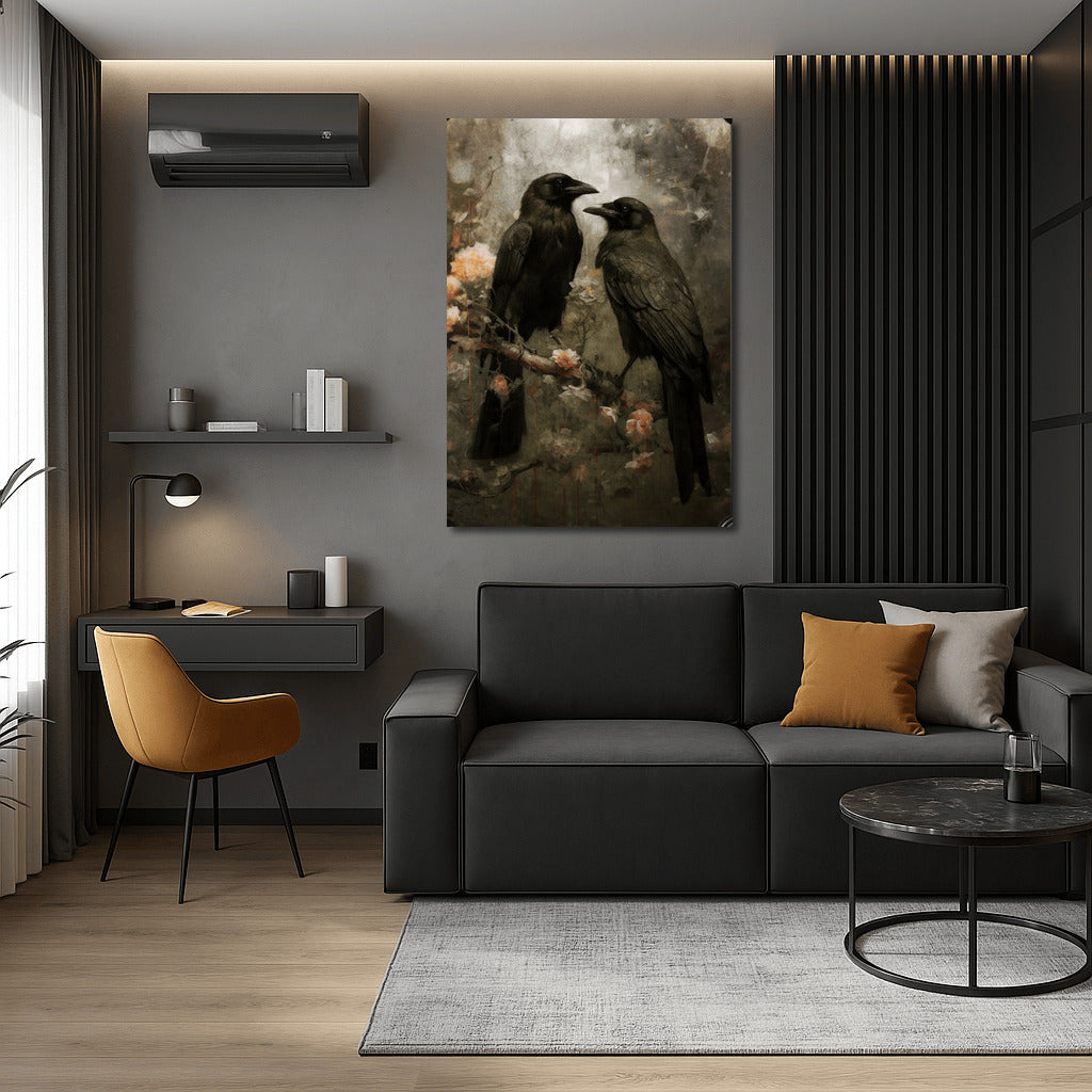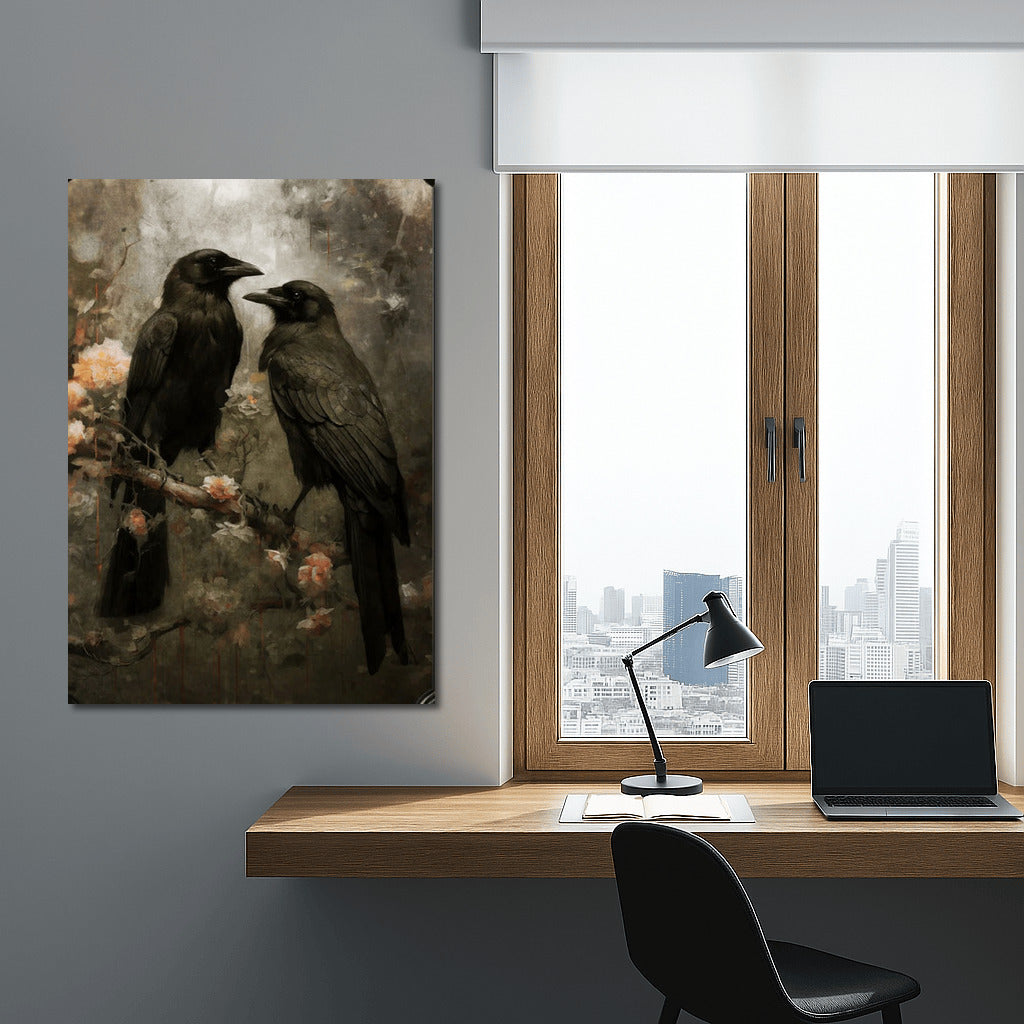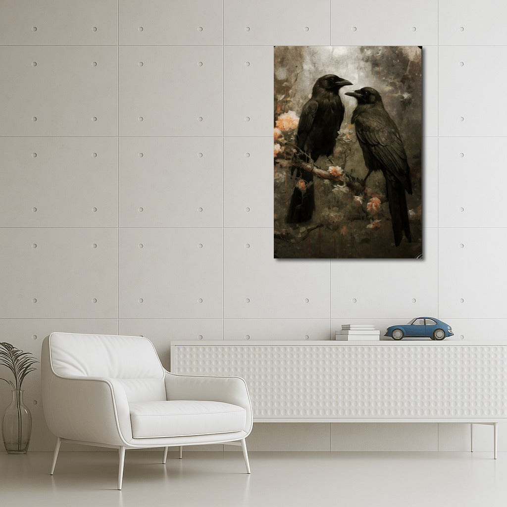 Black crows against a background of mysterious flowers create a gothic masterpiece. A perfect poster for a mystical mood. See more from the collection: Gothic Art
