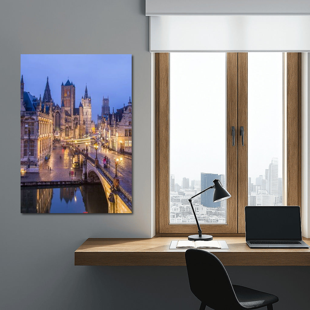 The gothic magic of Belgium in the evening glow. This poster is the perfect wall art for lovers of European charm. See more from the collection: Belgium Art
