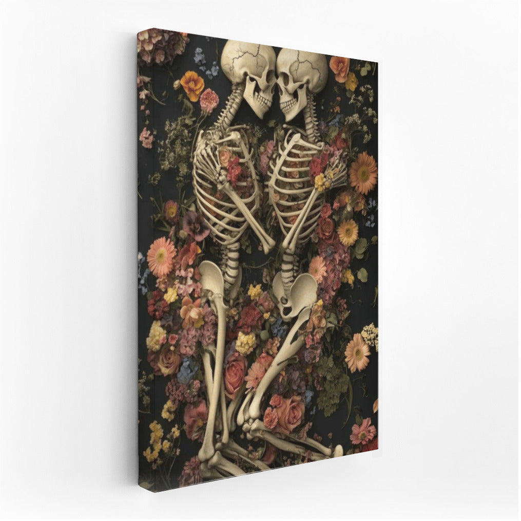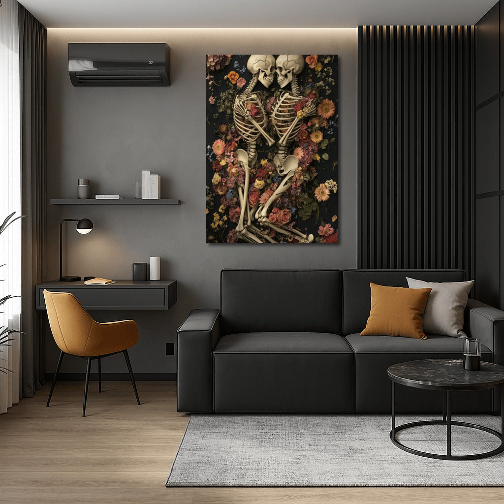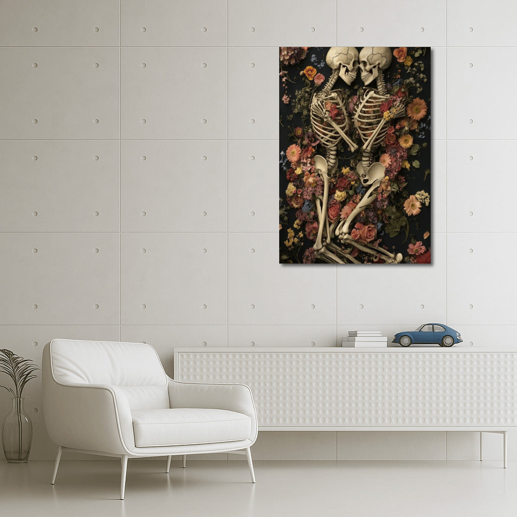 Gothic Love: Skeletons in Flowers Wall Art