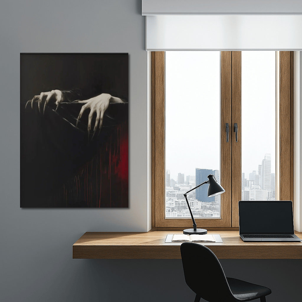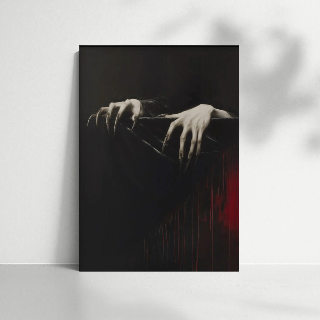Dark shadows come to life as mysterious hands erupt from the abyss in this gothic poster for your wall art. See more from the collection: Gothic Art